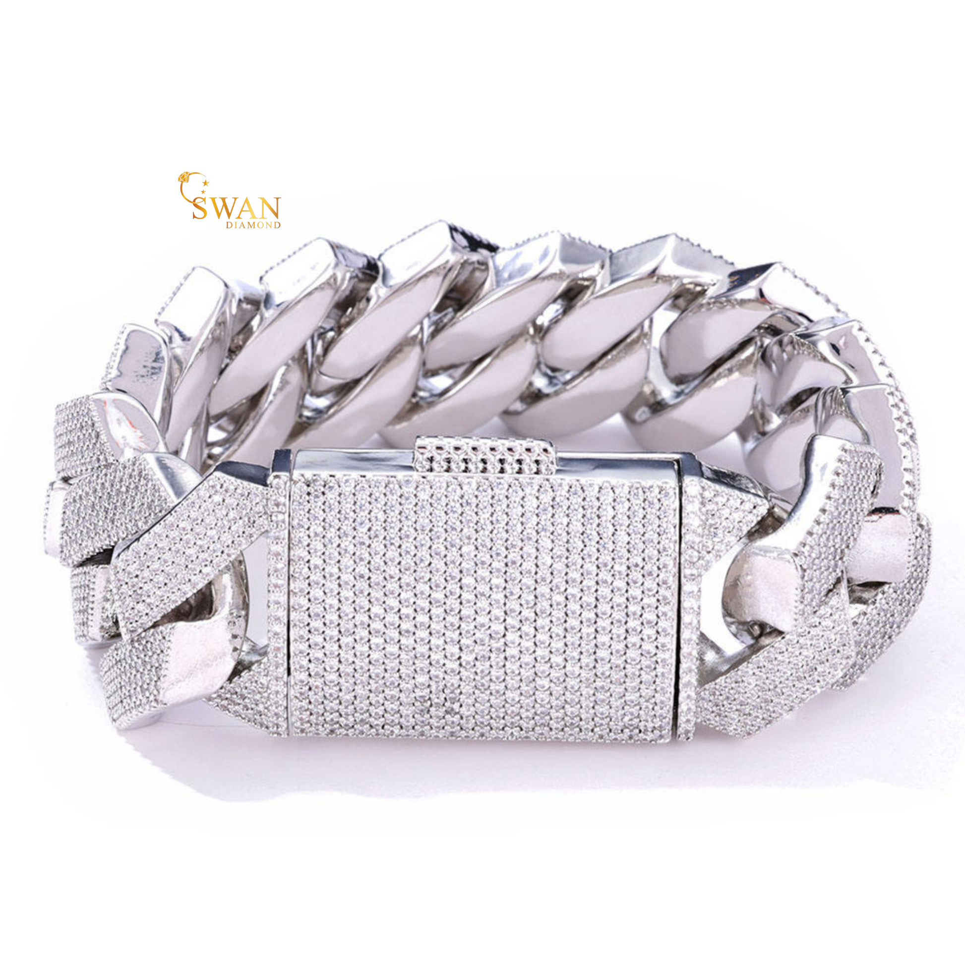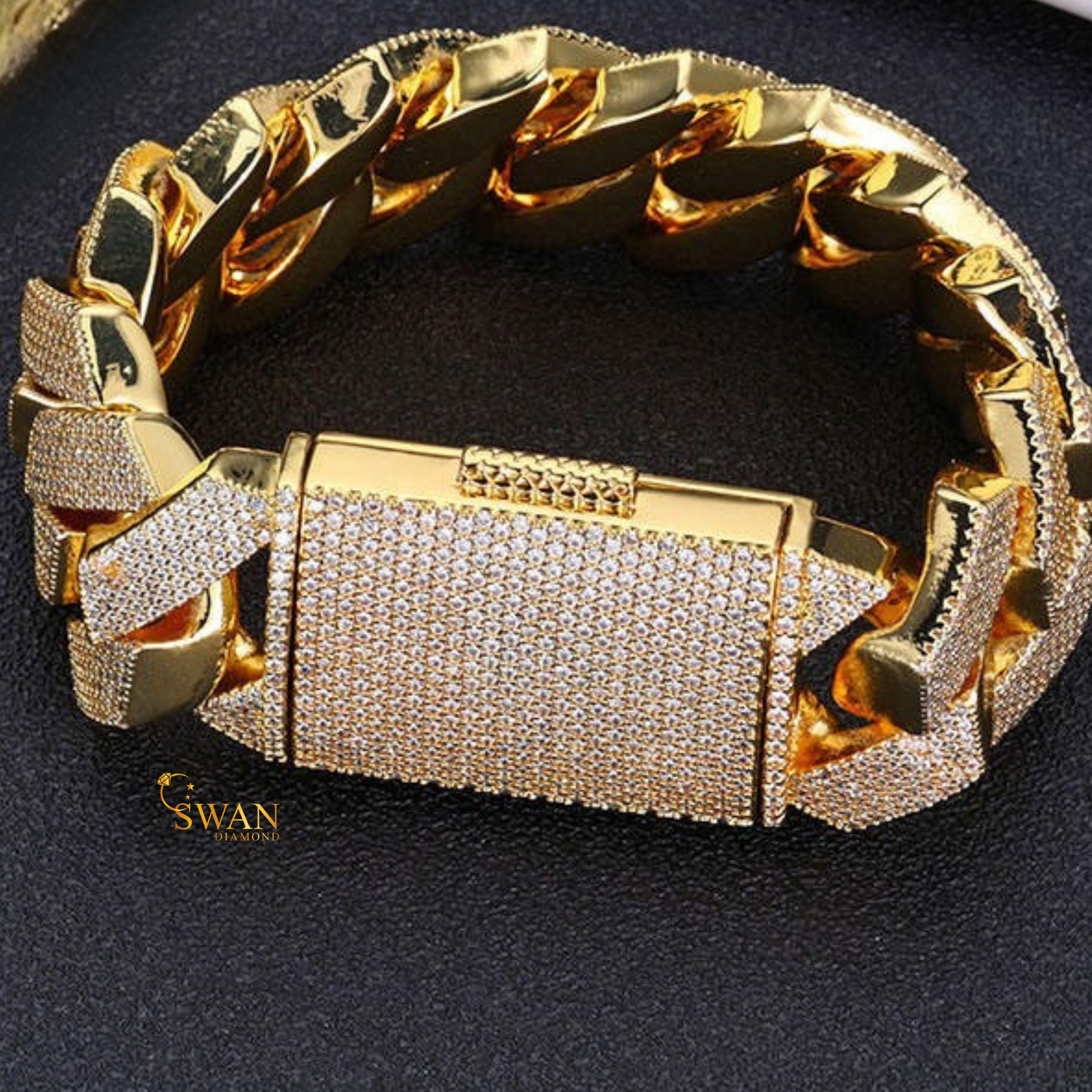 Iced Out Cuban Link Bracelets in White Gold and Yellow Gold with Natural Diamonds Wide Pave Statement Jewelry swandiamond