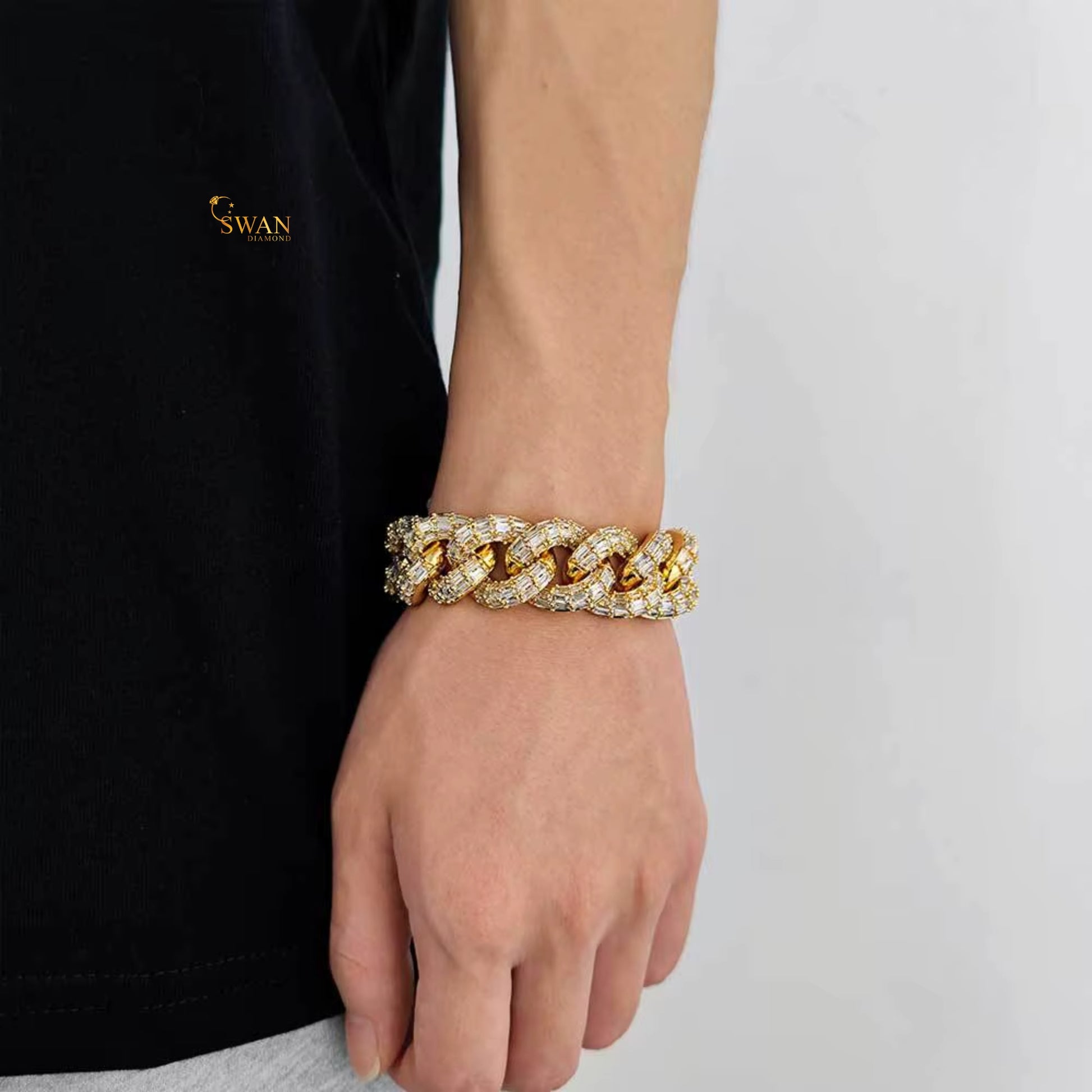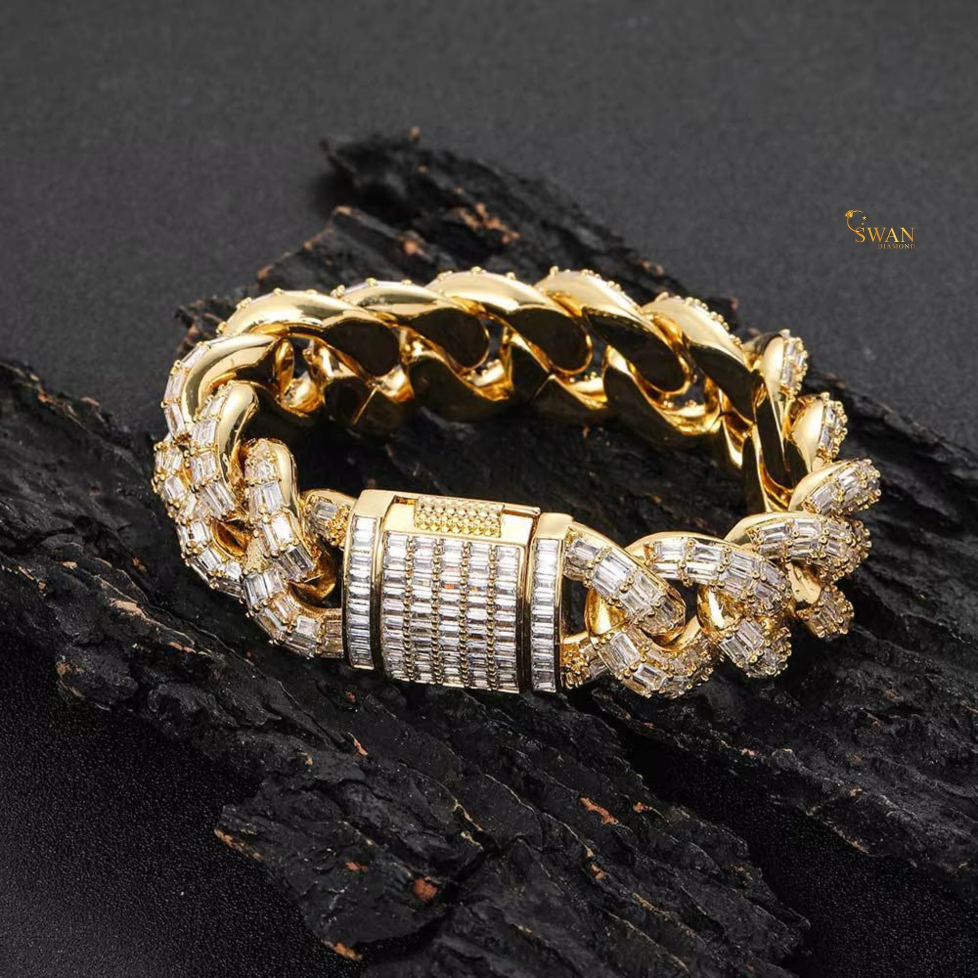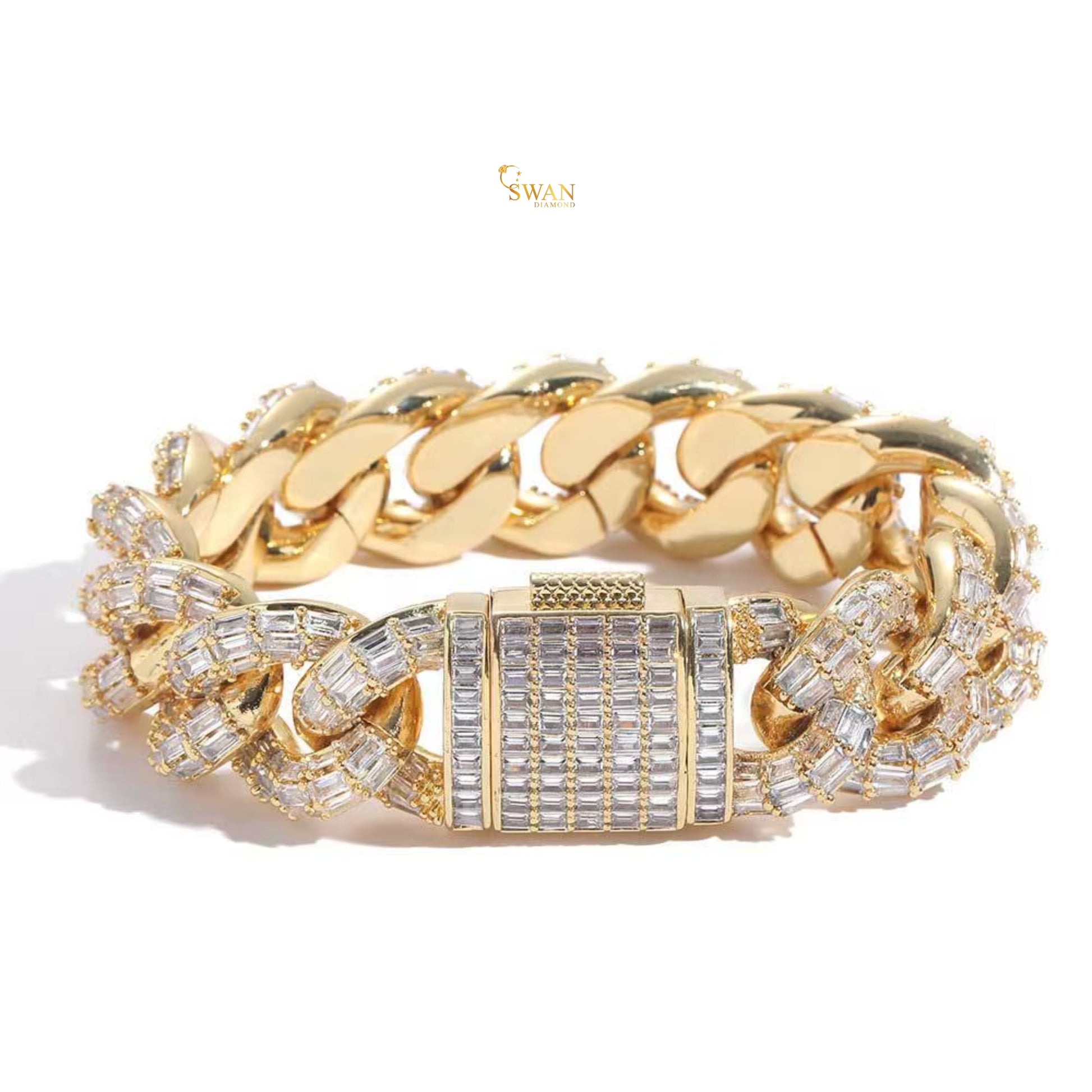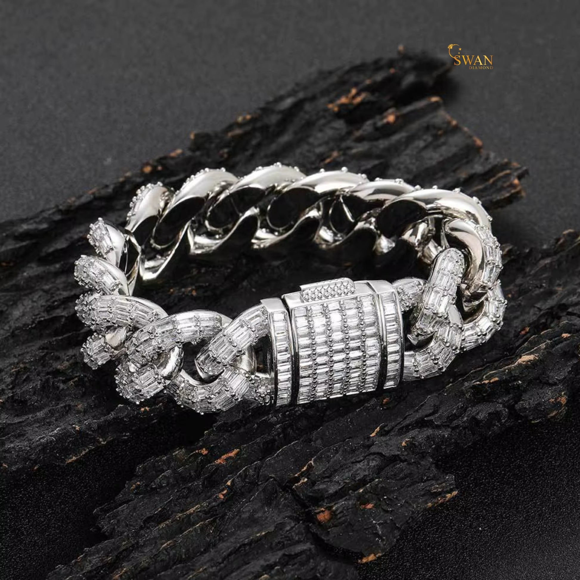 Icy Cuban Link Bracelet with Baguette and Round Cut Diamond Accents in White Gold Finish – Luxury Statement Jewelry swandiamond
