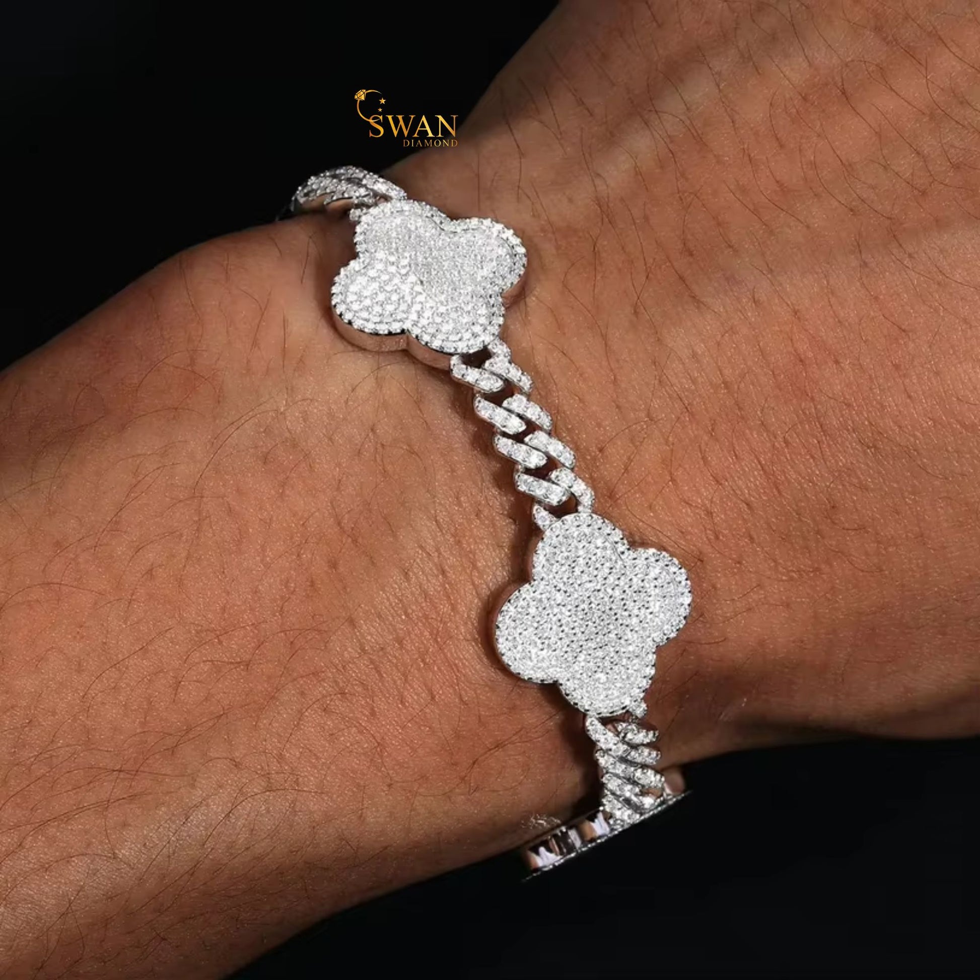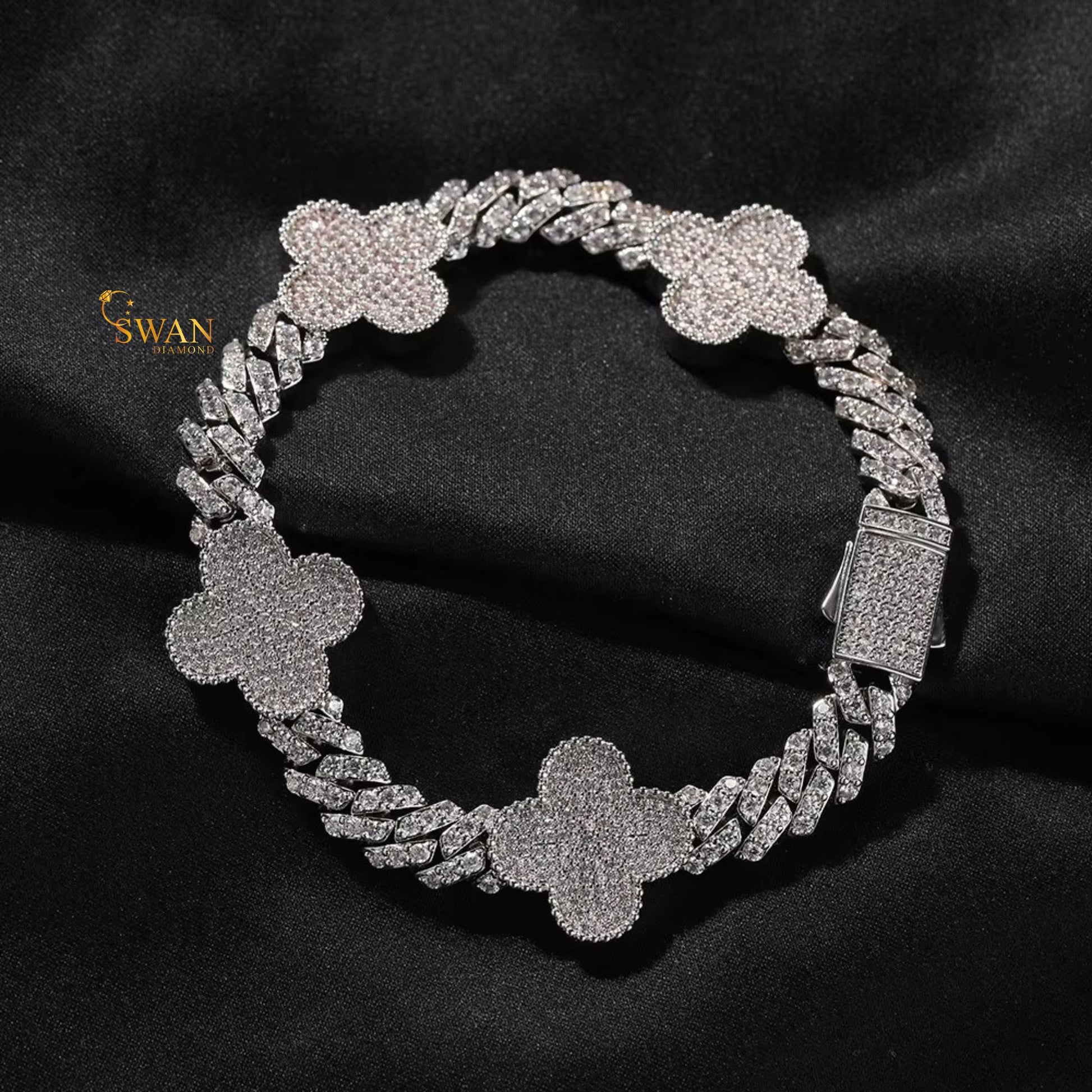 Luxury Clover Design Diamond Bracelet in White Gold and Yellow Gold with Full Pave Setting Elegant Statement Jewelry swandiamond