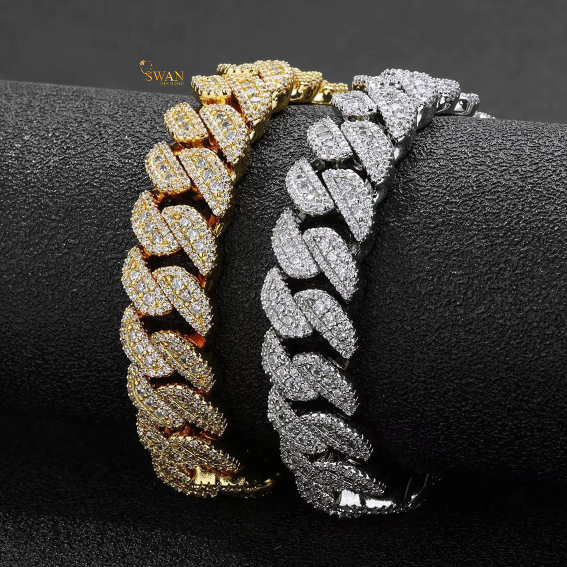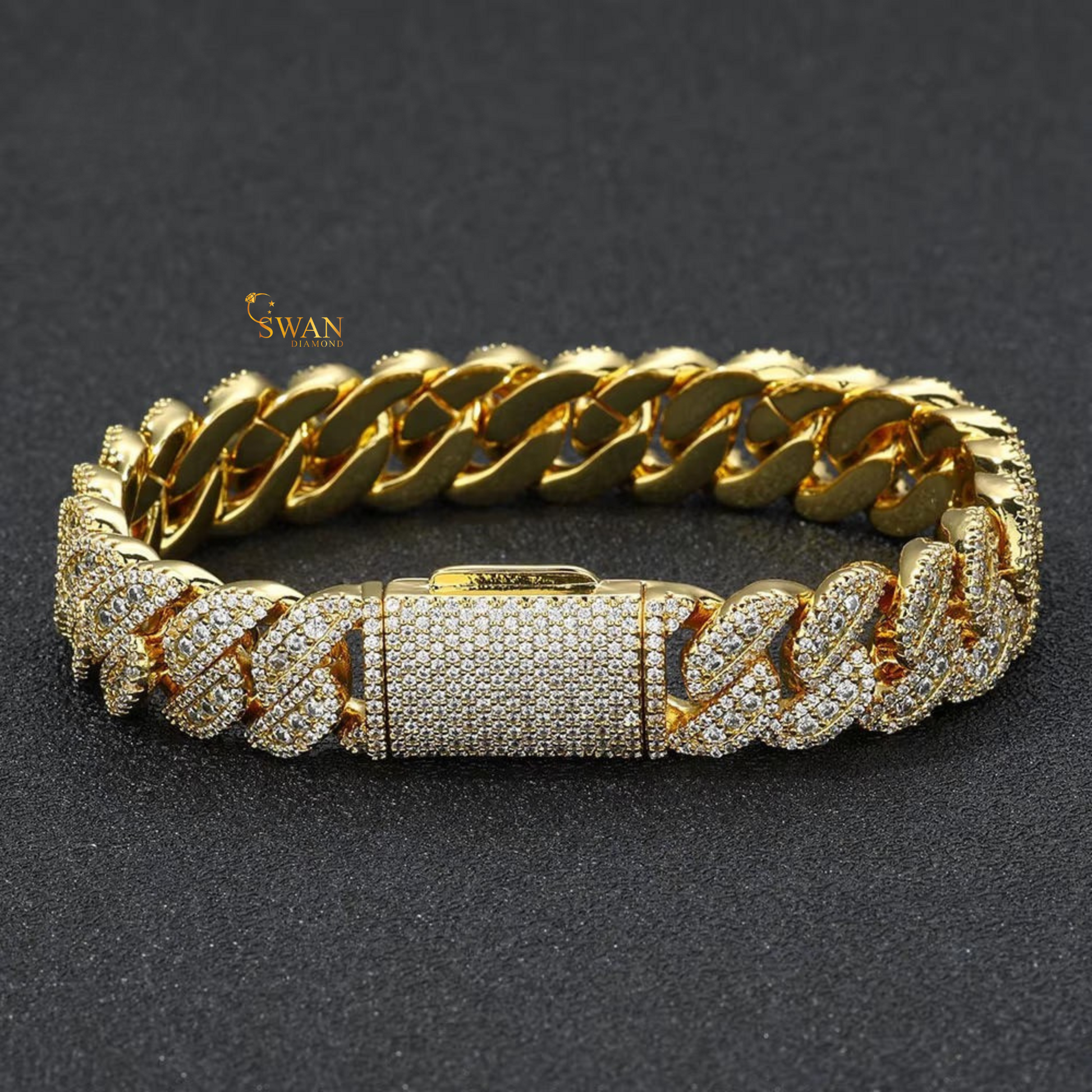 Luxury Cuban Link Bracelet in White Gold with Natural Diamonds Iced Out Pave Setting Hip Hop Statement Jewelry swandiamond