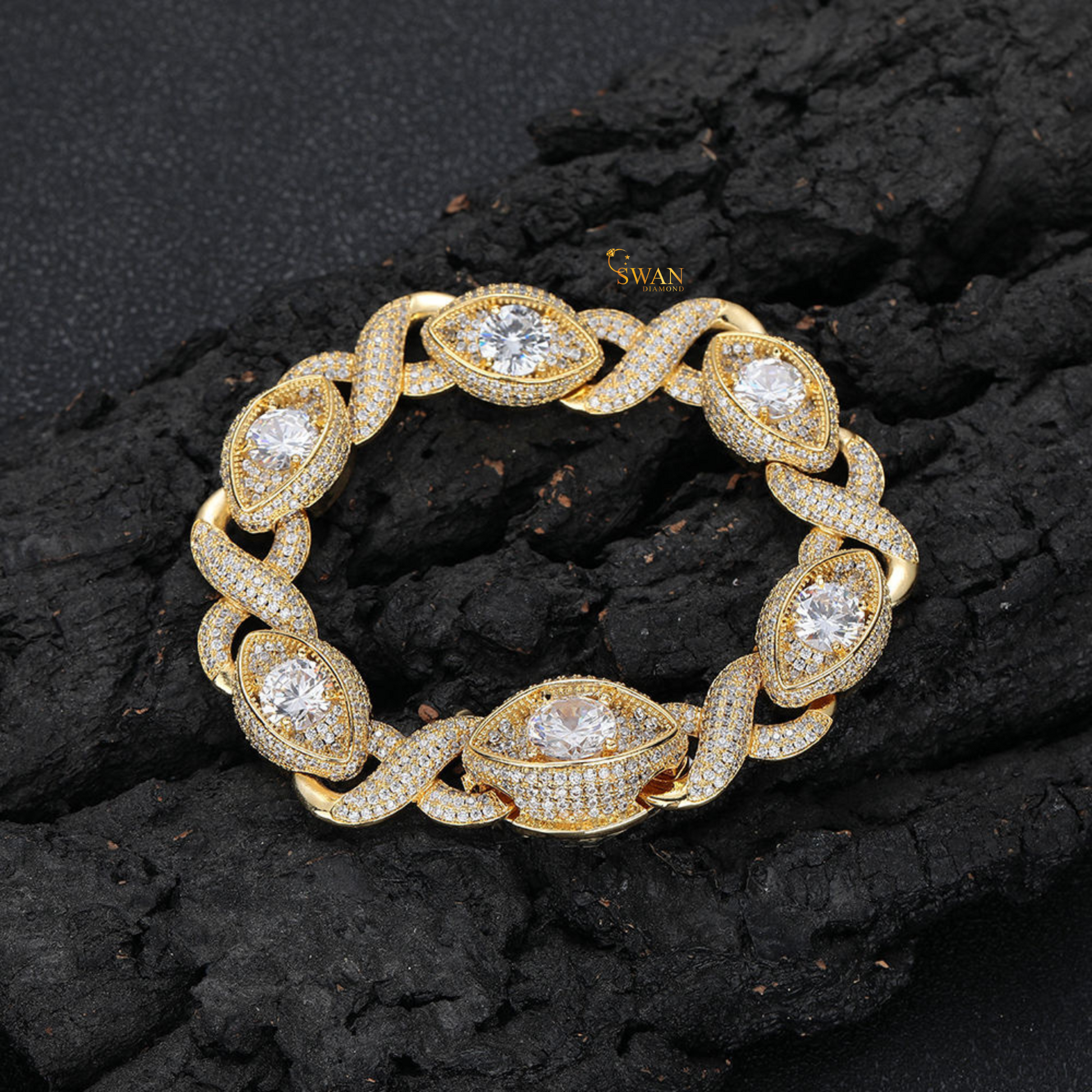 Luxury Icy Marquise and Round Diamond Link Bracelet Yellow Gold Plated Cuban Style Chain with Full Pave Setting Sparkling Statement Jewelry swandiamond