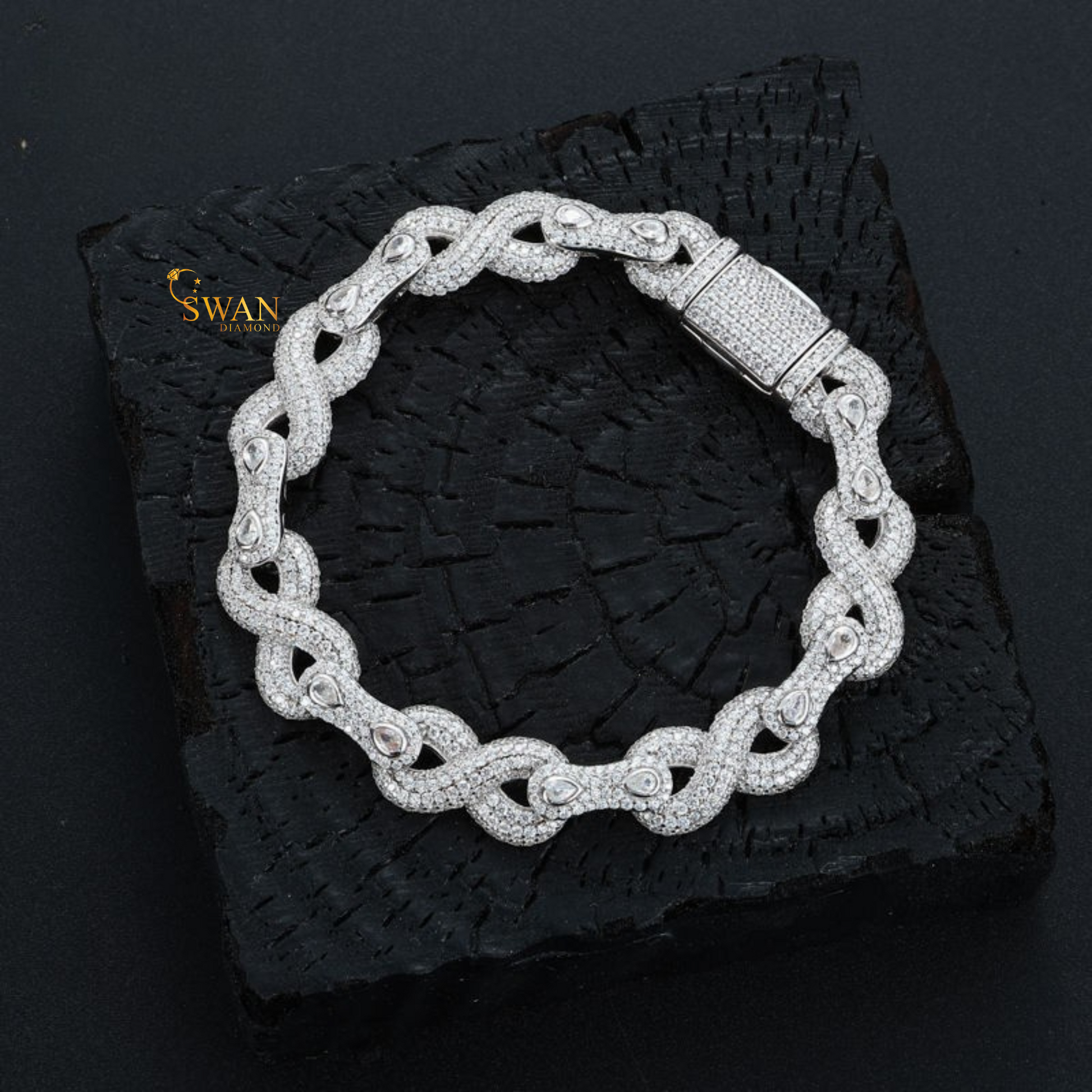 Pear Cut Diamond Cuban Link Bracelets in White Gold and Yellow Gold with Natural Diamonds Iced Out Luxury Jewelry swandiamond