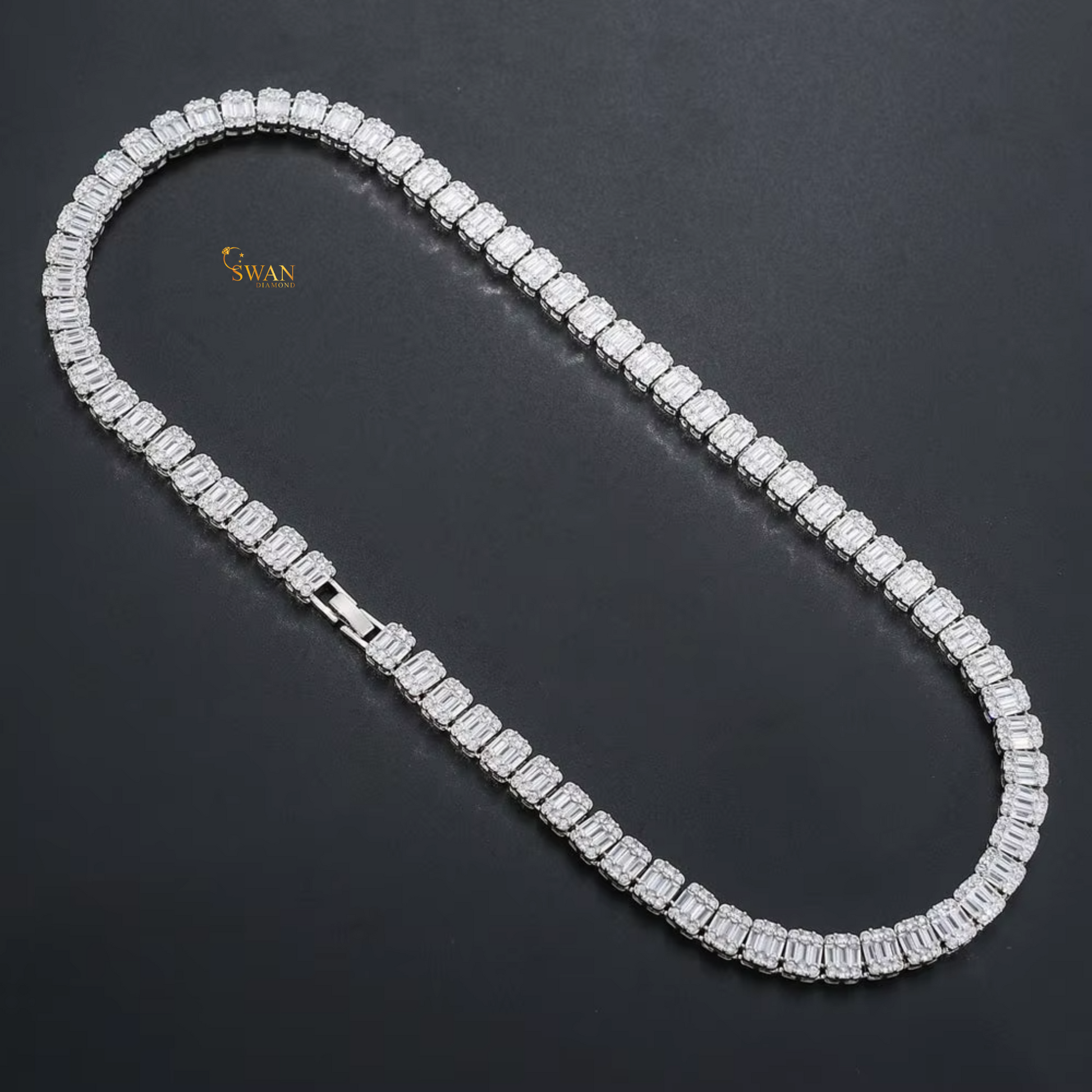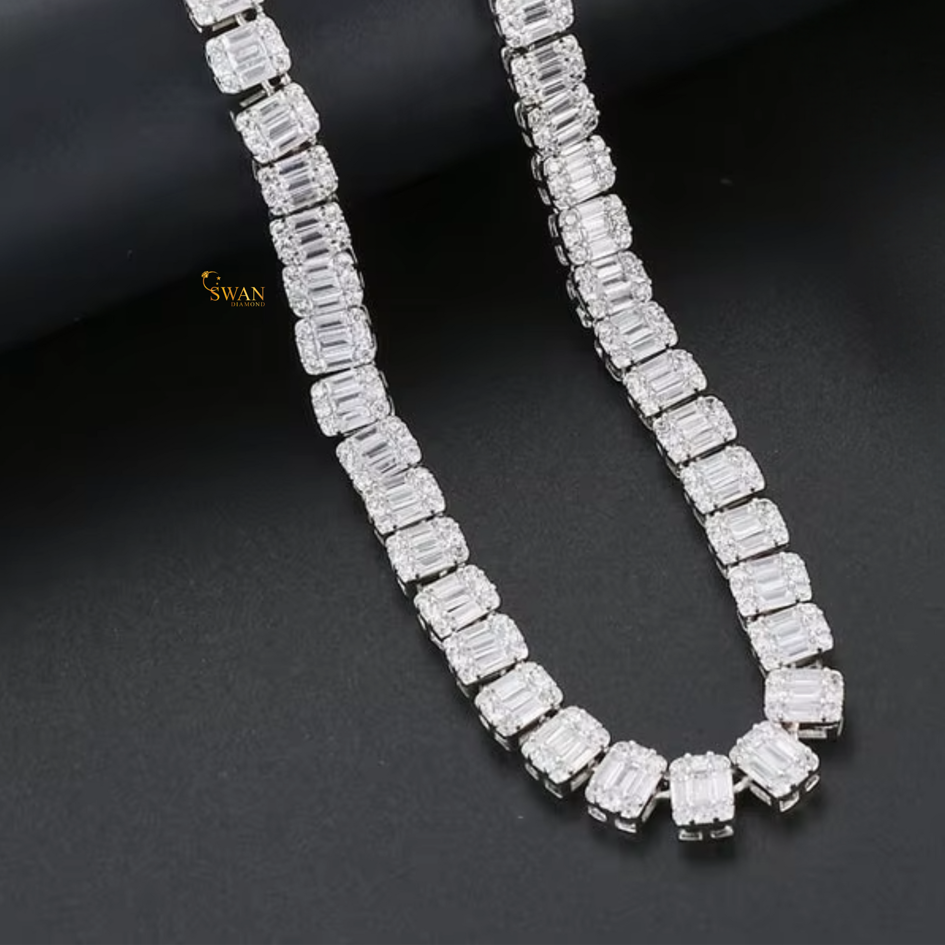 Emerald Cut & Baguette Cut Diamond Tennis Necklace in White Gold Classic Statement Jewelry for Men and Women Luxury Gift Timeless Elegant Design swandiamond