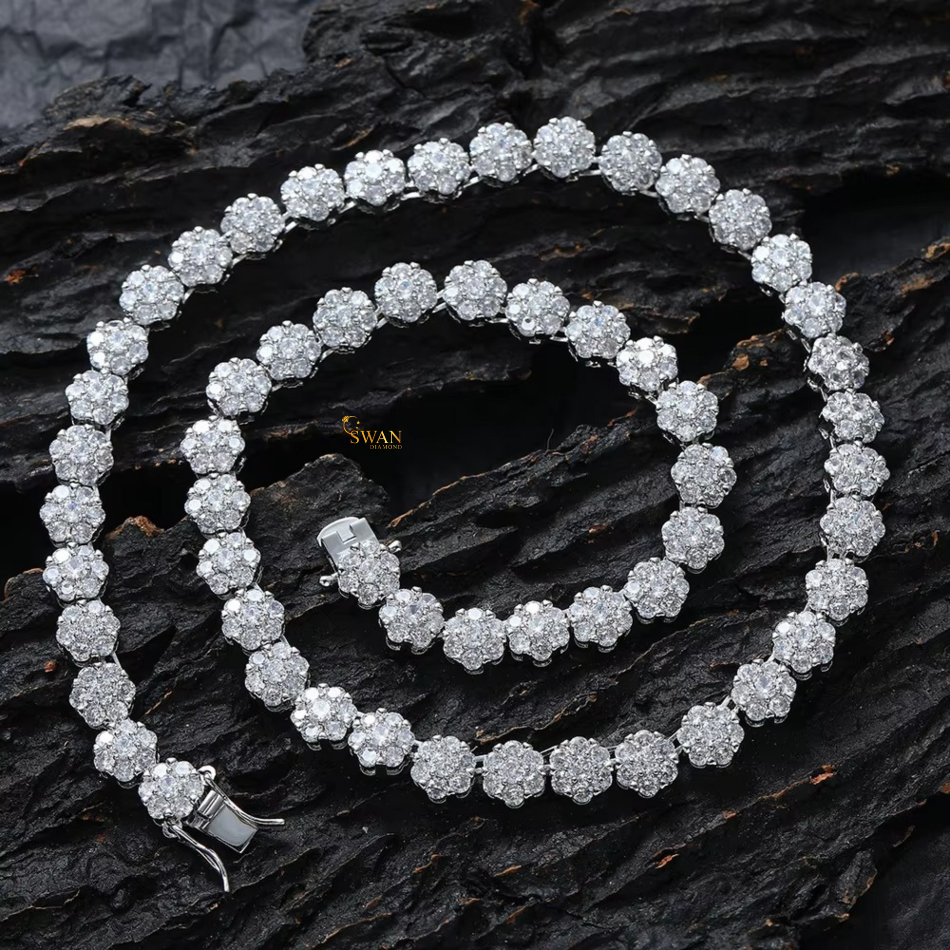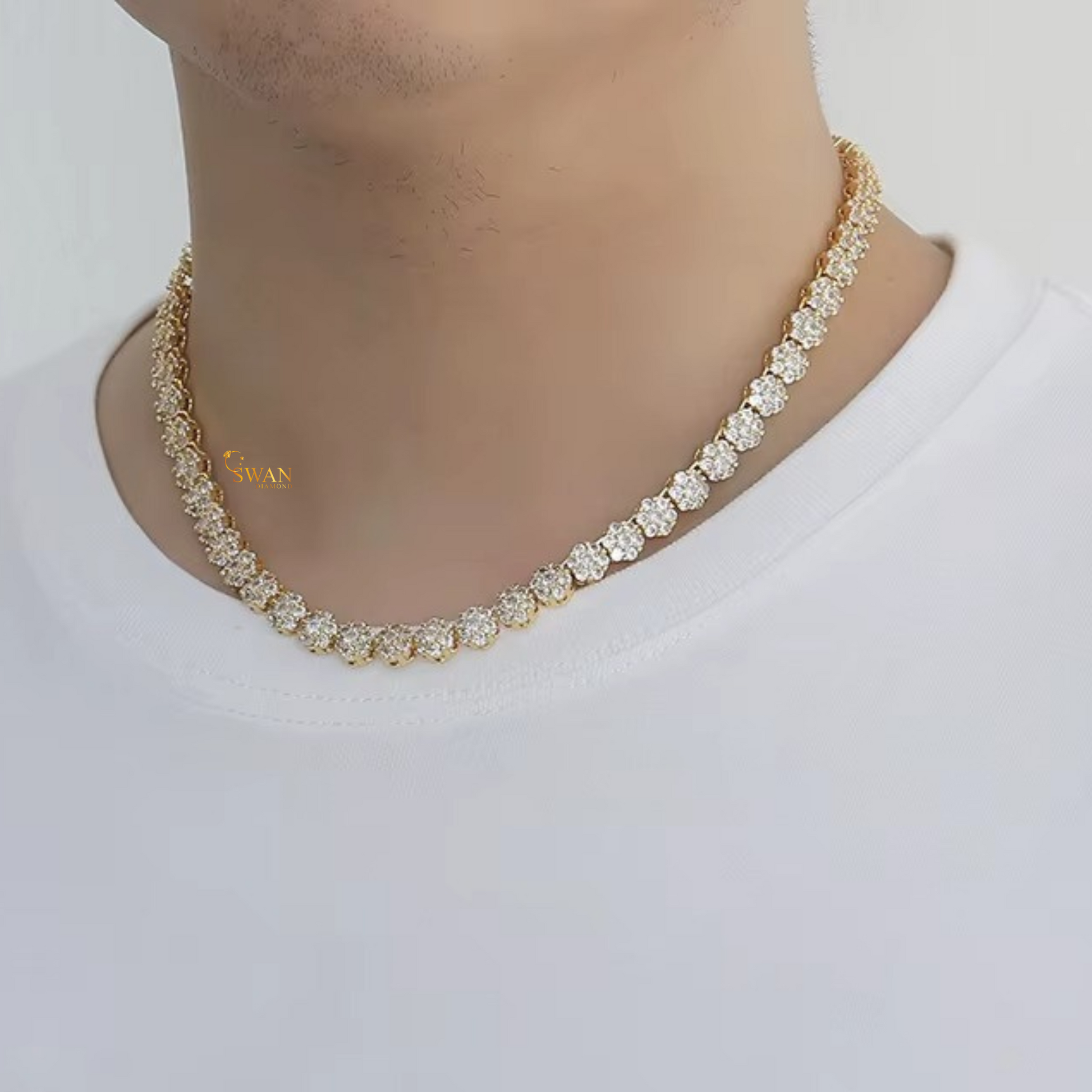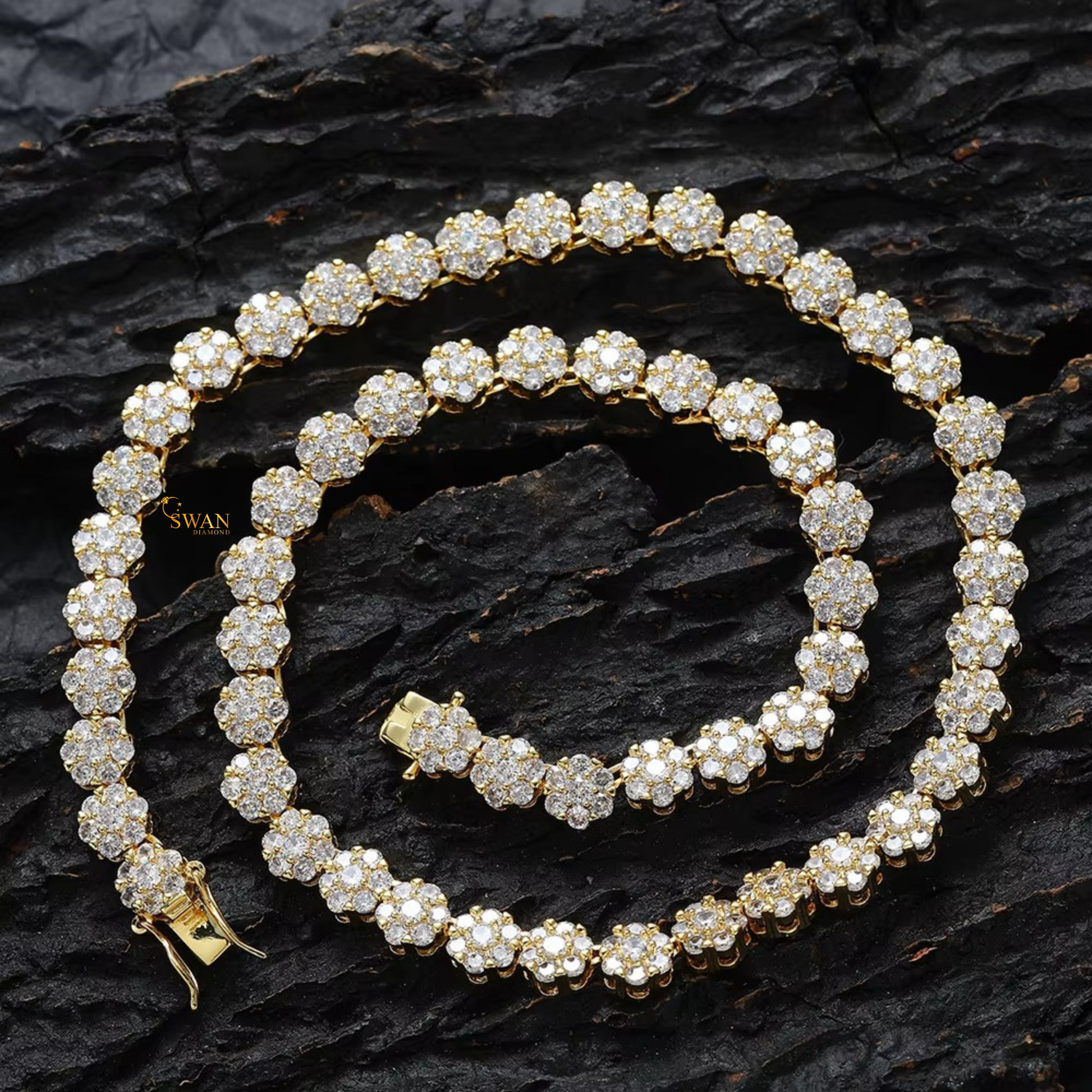 Flower Cluster Diamond Tennis Necklace in White and Yellow Gold Luxury Statement Jewelry for Men and Women swandiamond