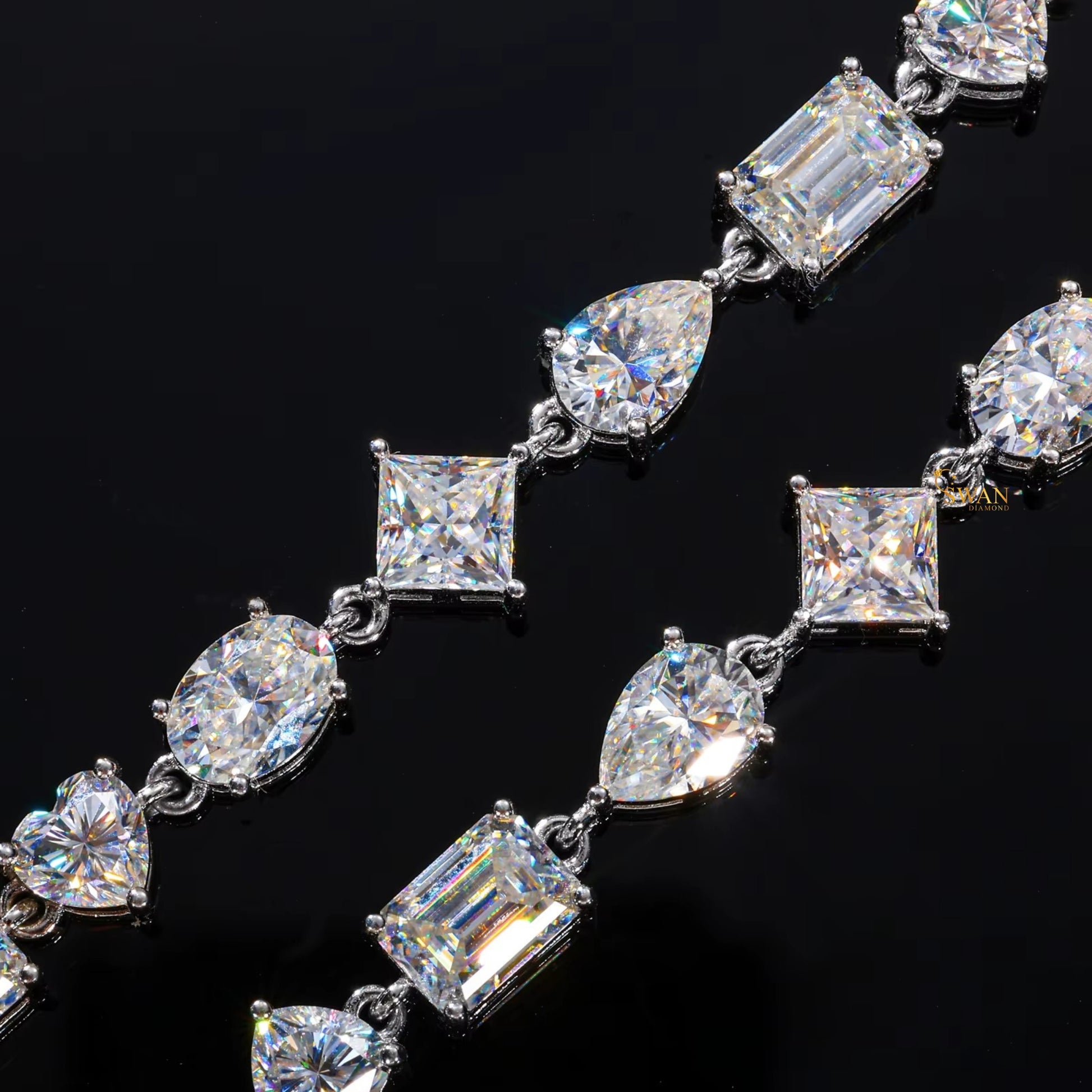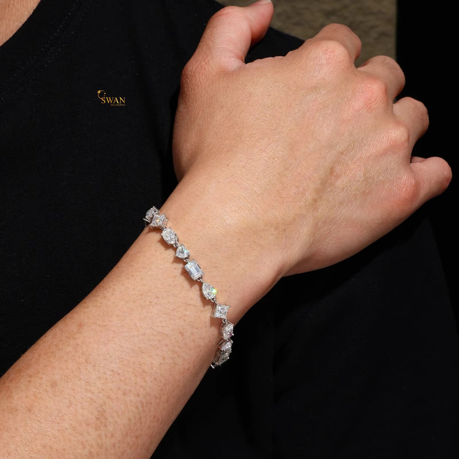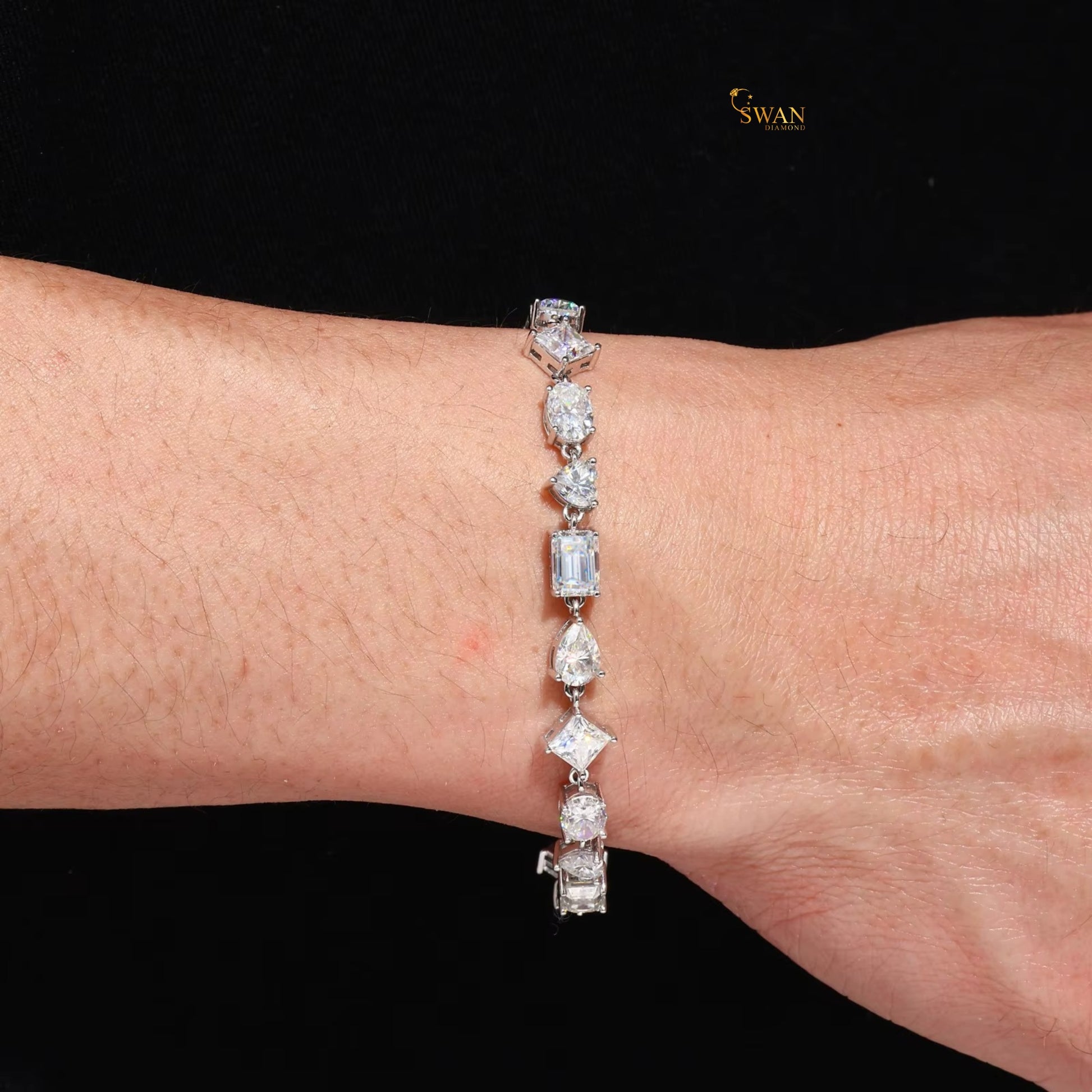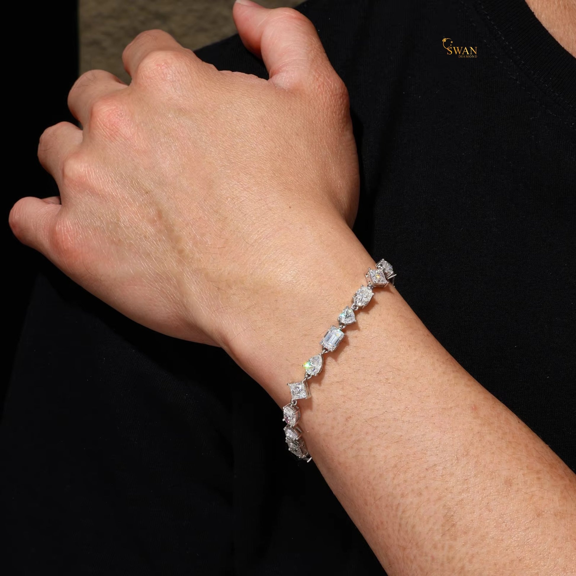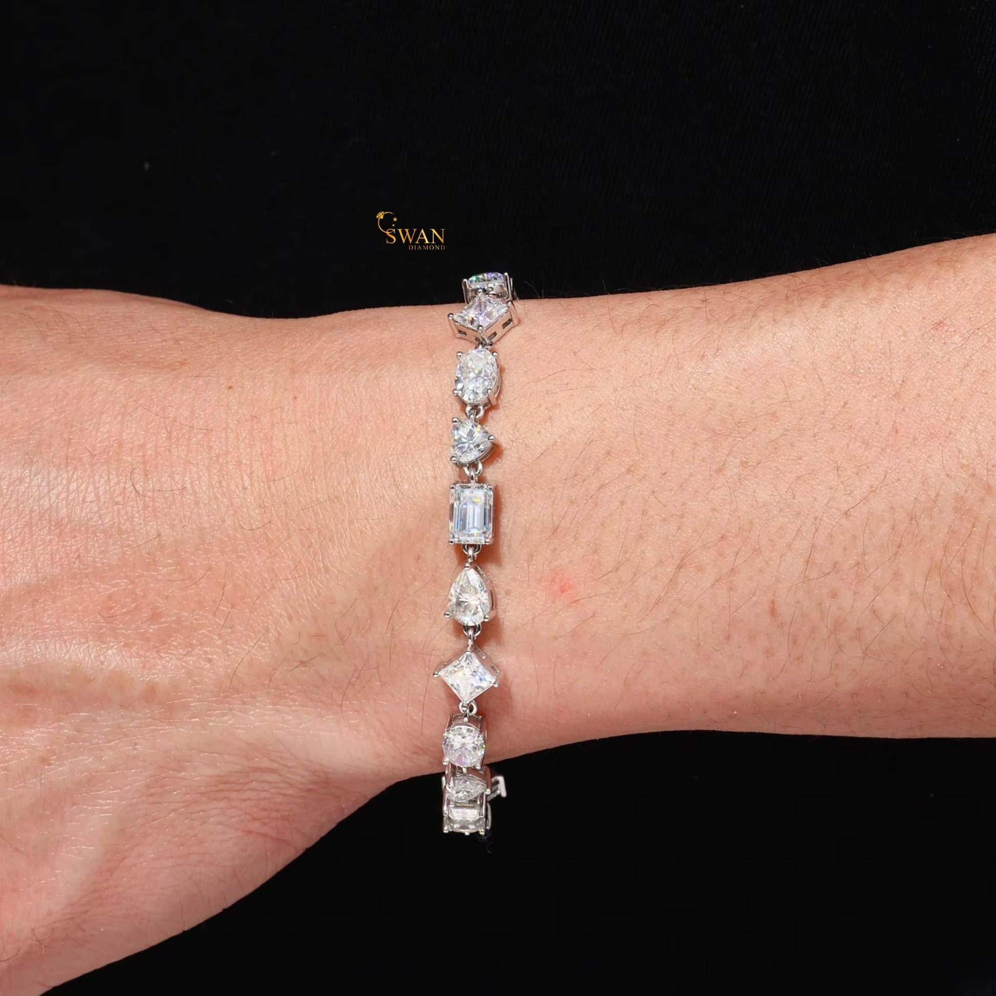 Unique Mixed Cut Diamond Tennis Bracelet in White Gold Featuring Oval Pear Emerald Heart and Princess Cuts Sparkling Natural Diamond Jewelry Gift swandiamond