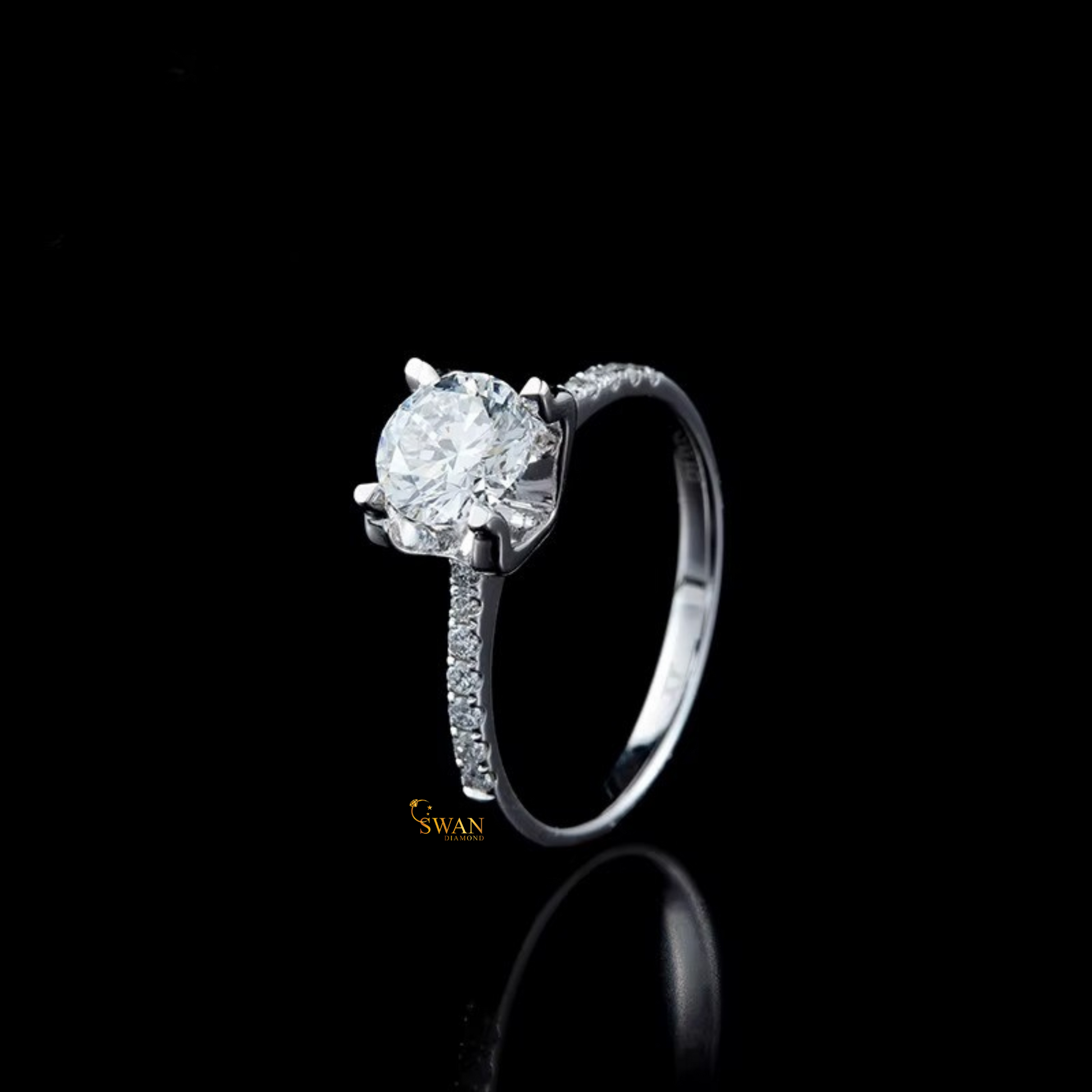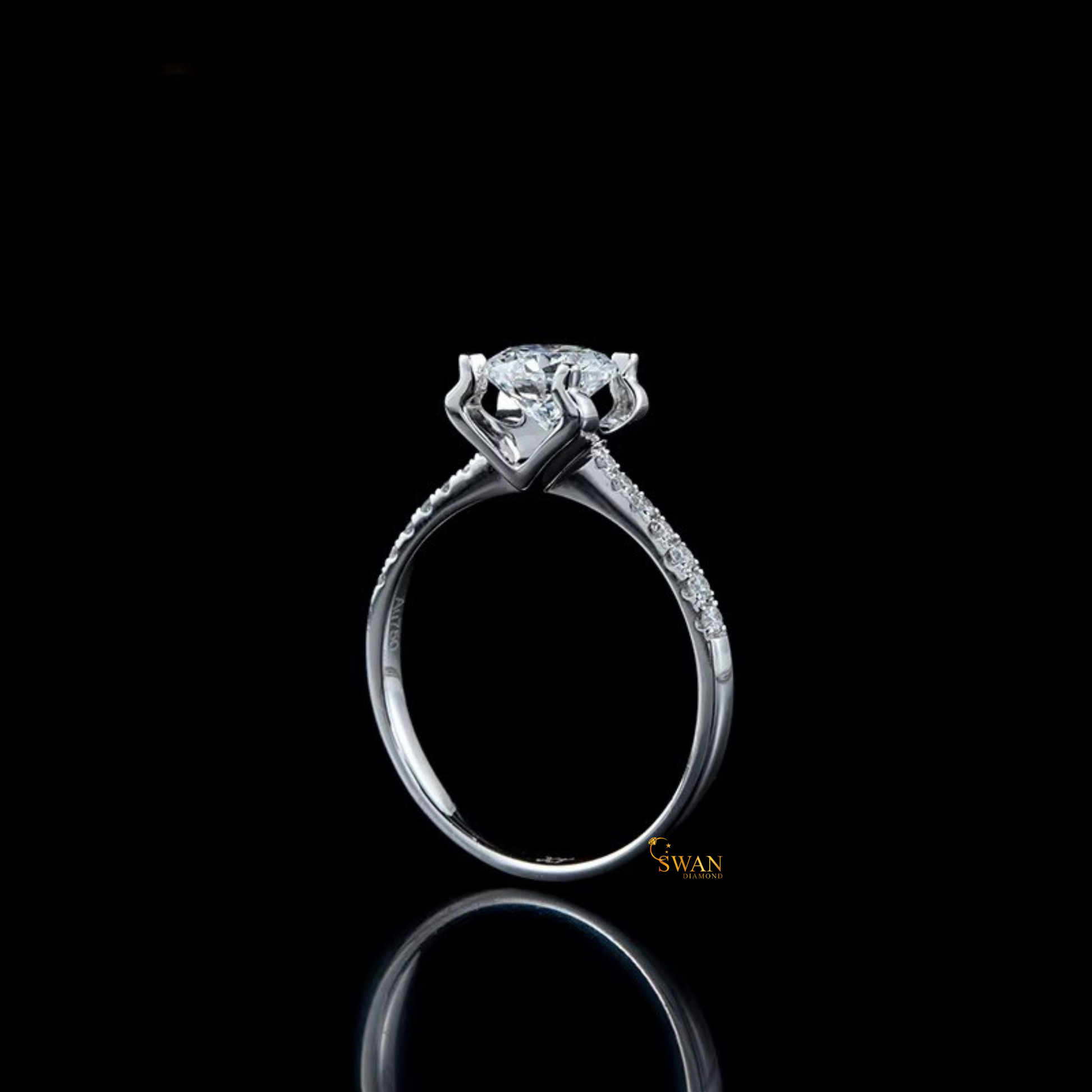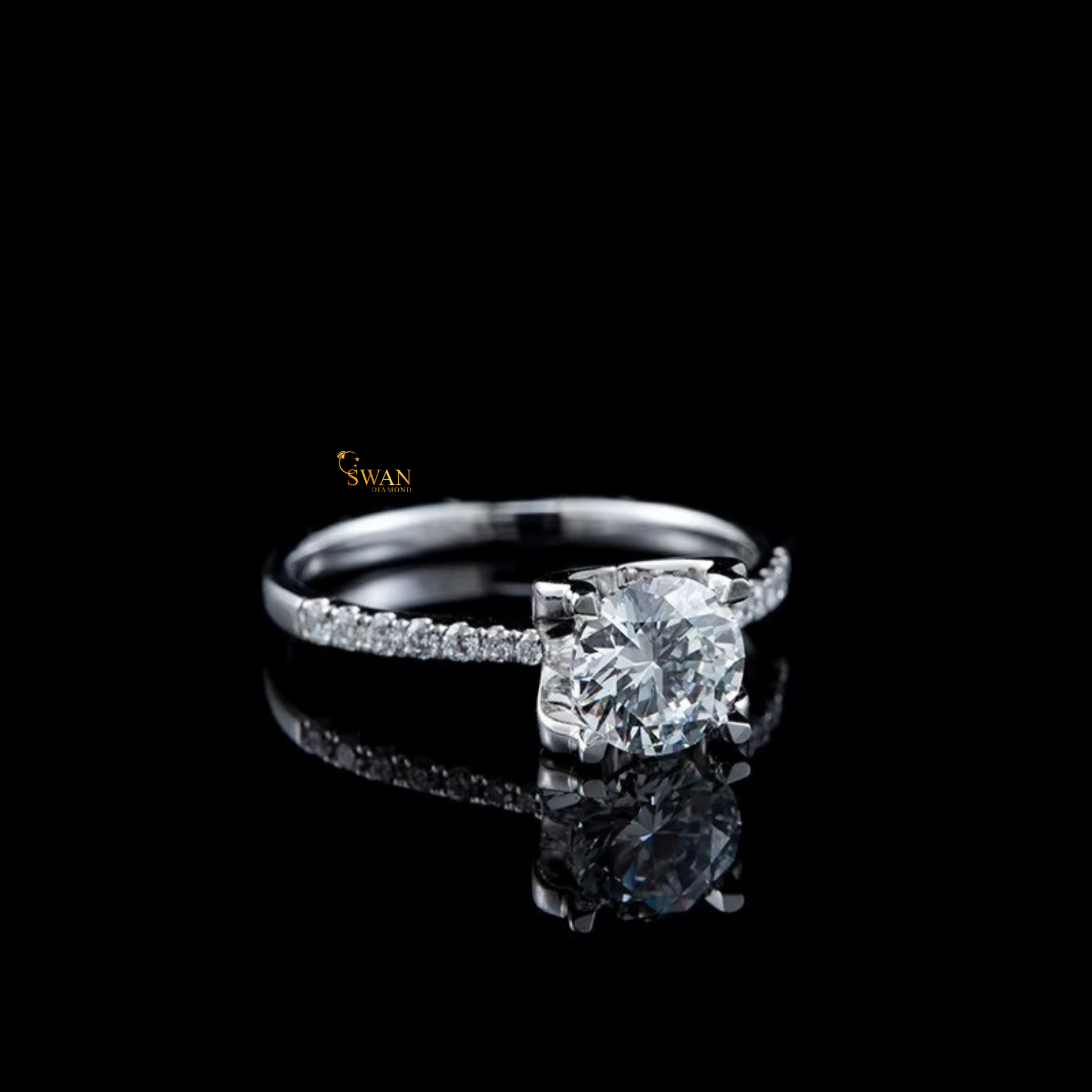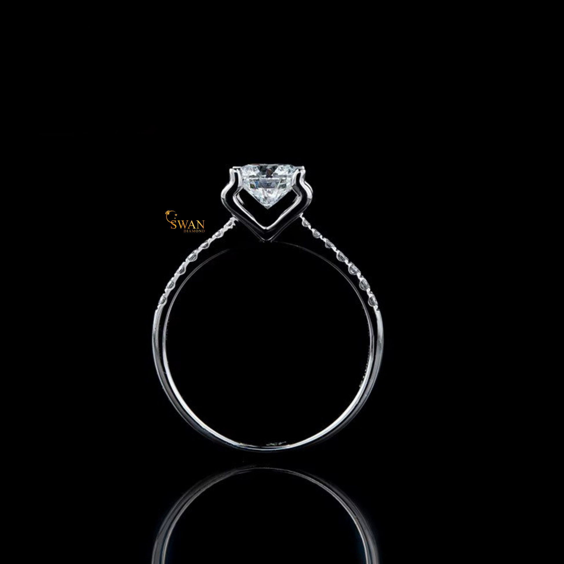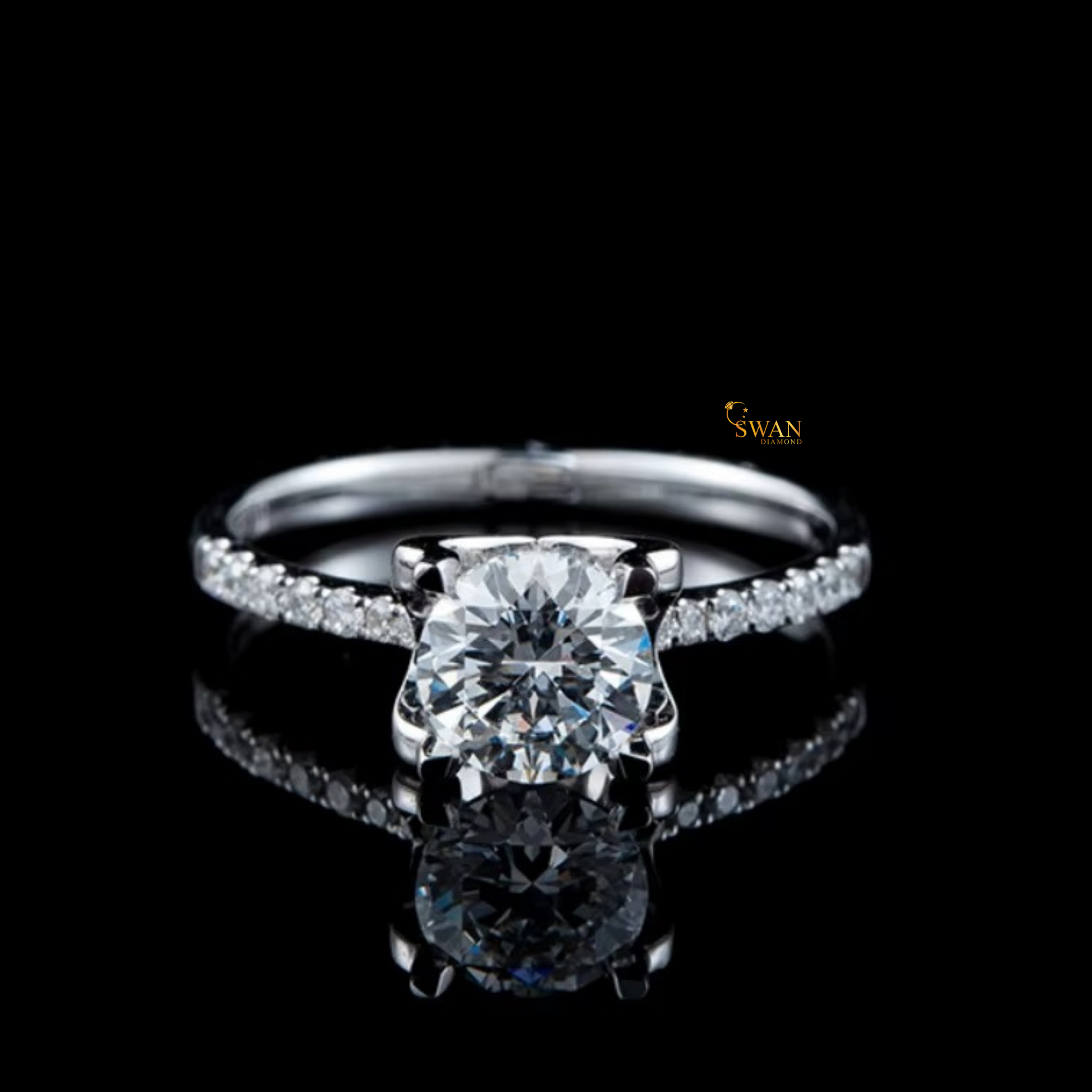 Cushion Cut Diamond Engagement Ring in Solid White Gold with Pavé Band Elegant Classic Solitaire Bridal Jewelry Gift for Her swandiamond