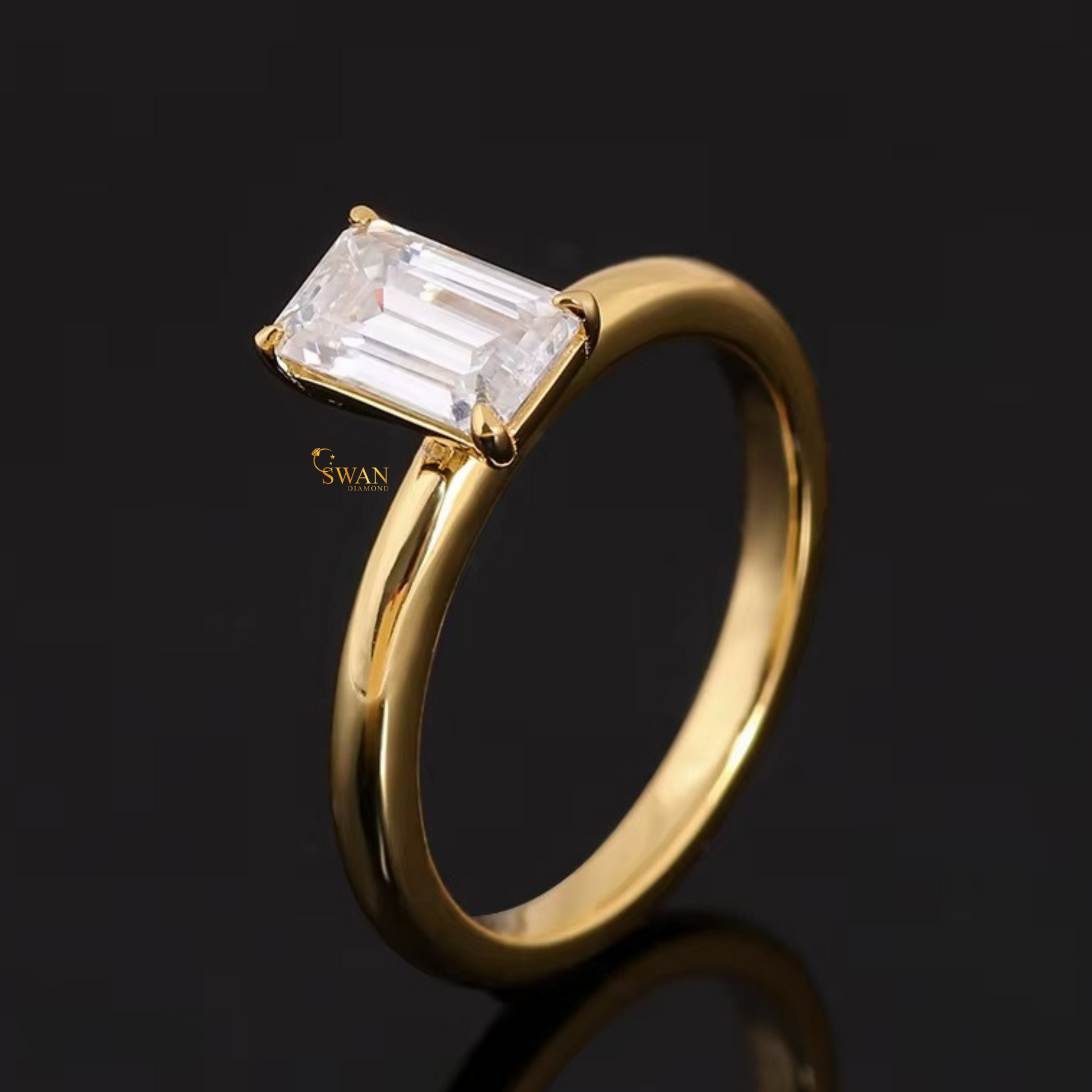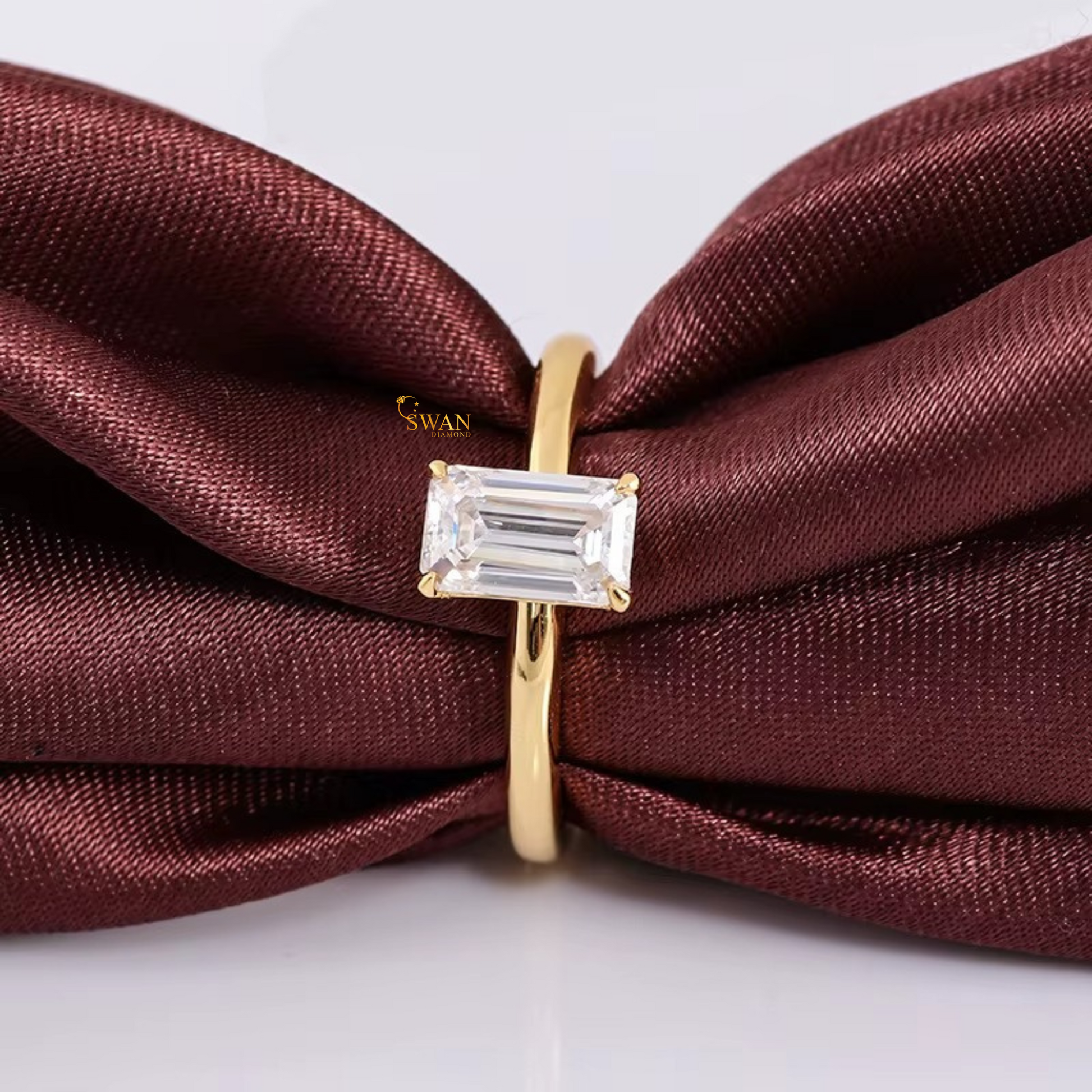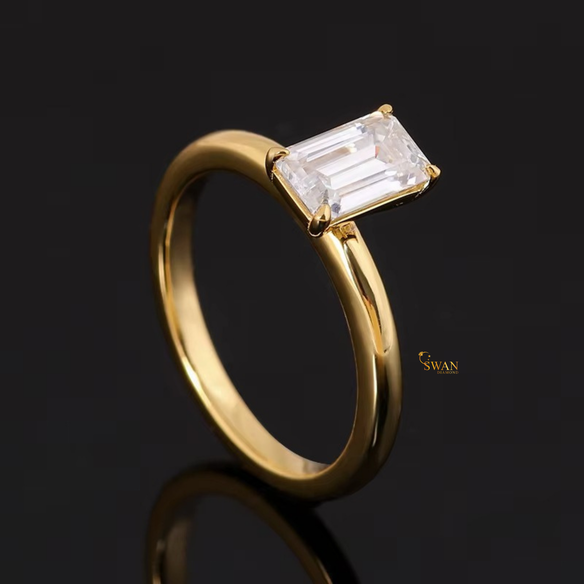 Emerald Cut Solitaire Diamond Engagement Ring in Gold Classic Four Prong Setting Elegant Modern Bridal Jewelry Gift for Her swandiamond