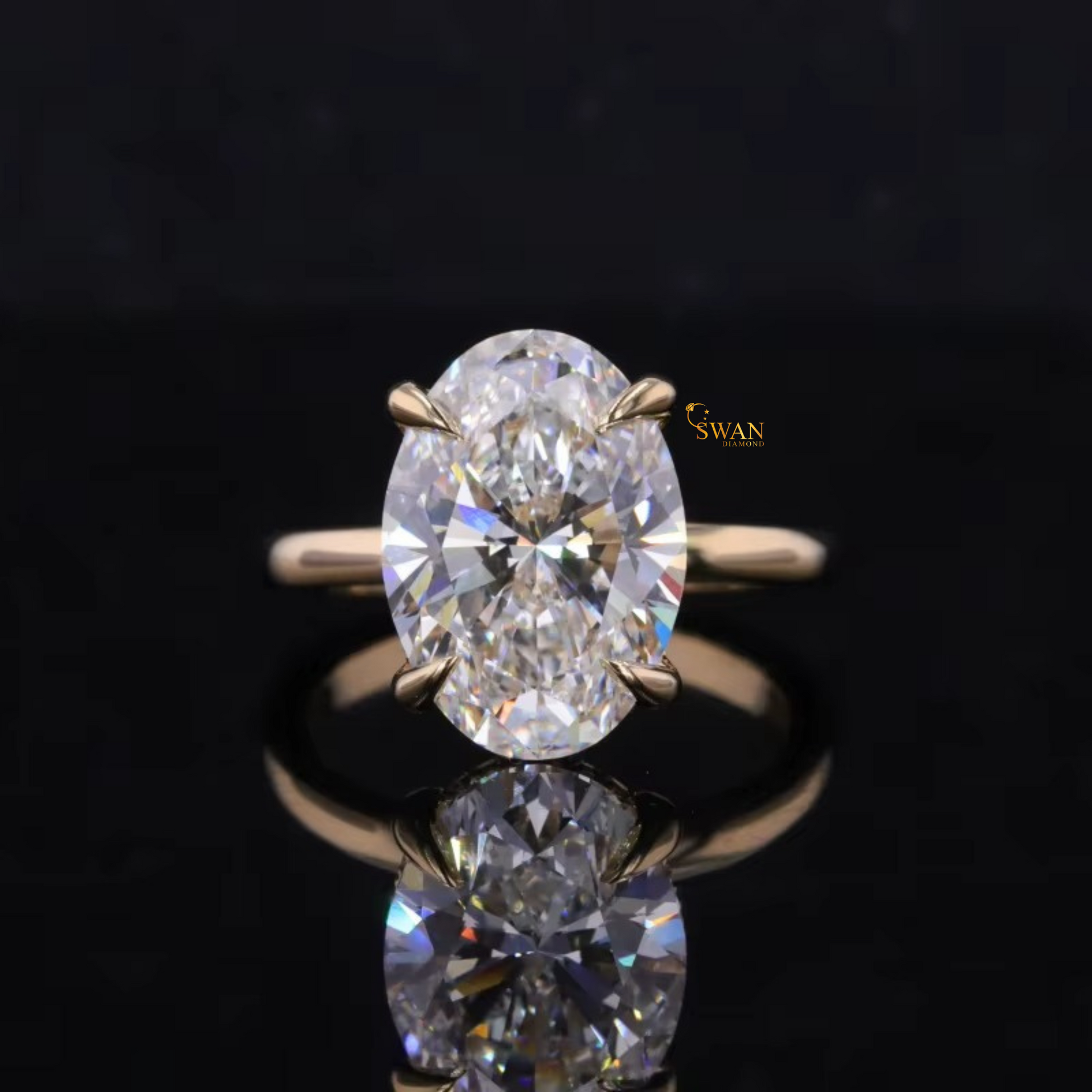 Oval Cut Solitaire Diamond Engagement Ring in Solid Gold Classic Four Prong Setting Elegant Bridal Jewelry Gift for Her swandiamond
