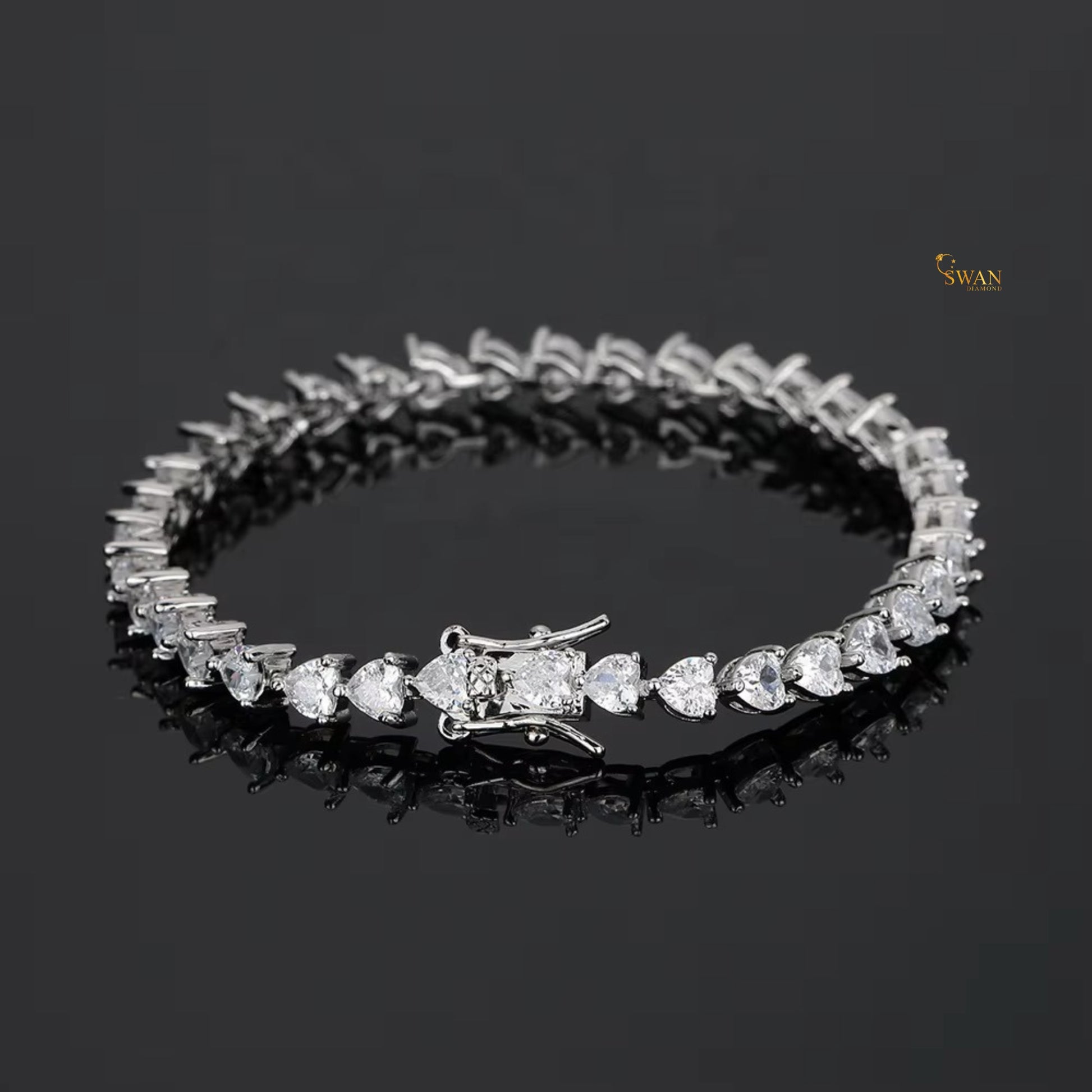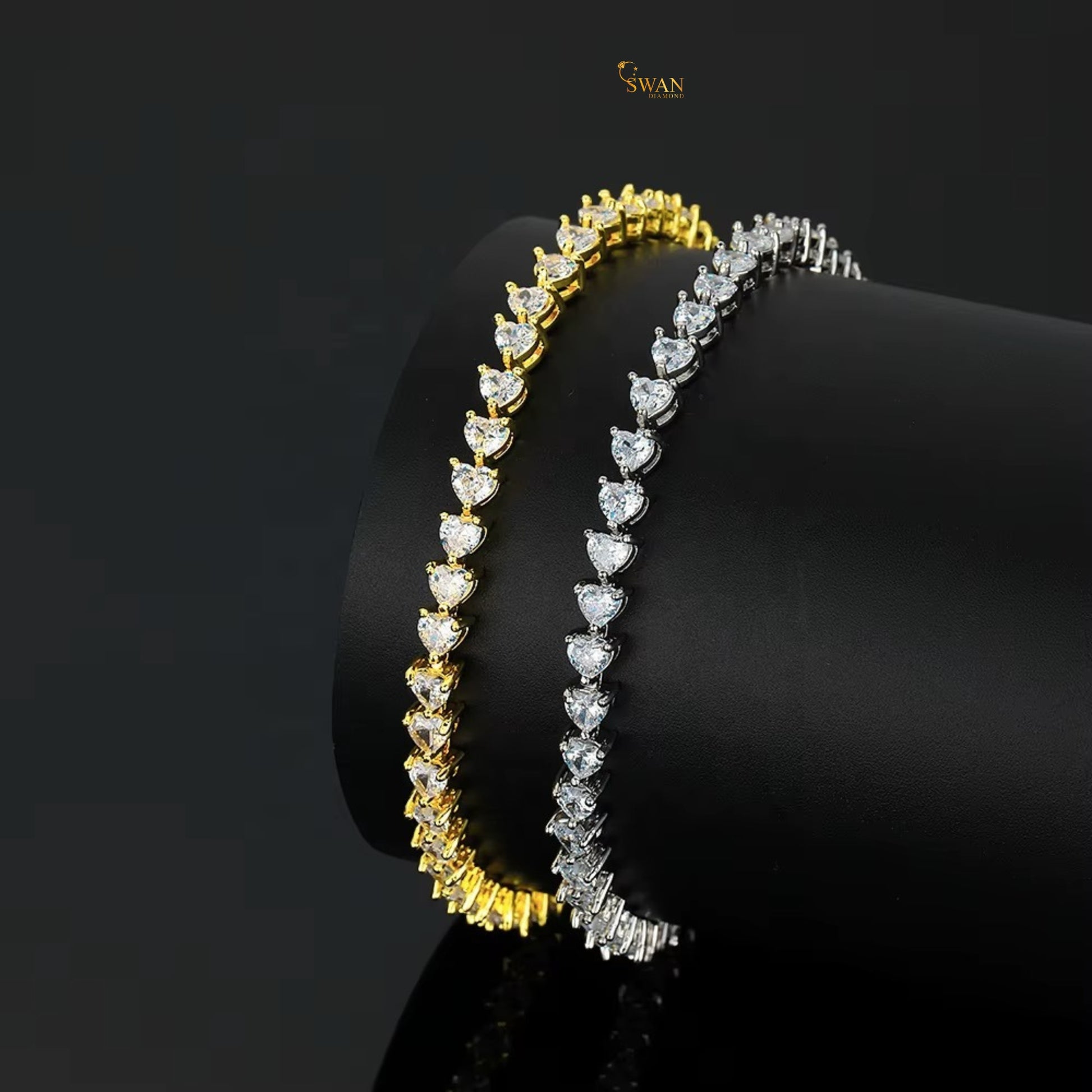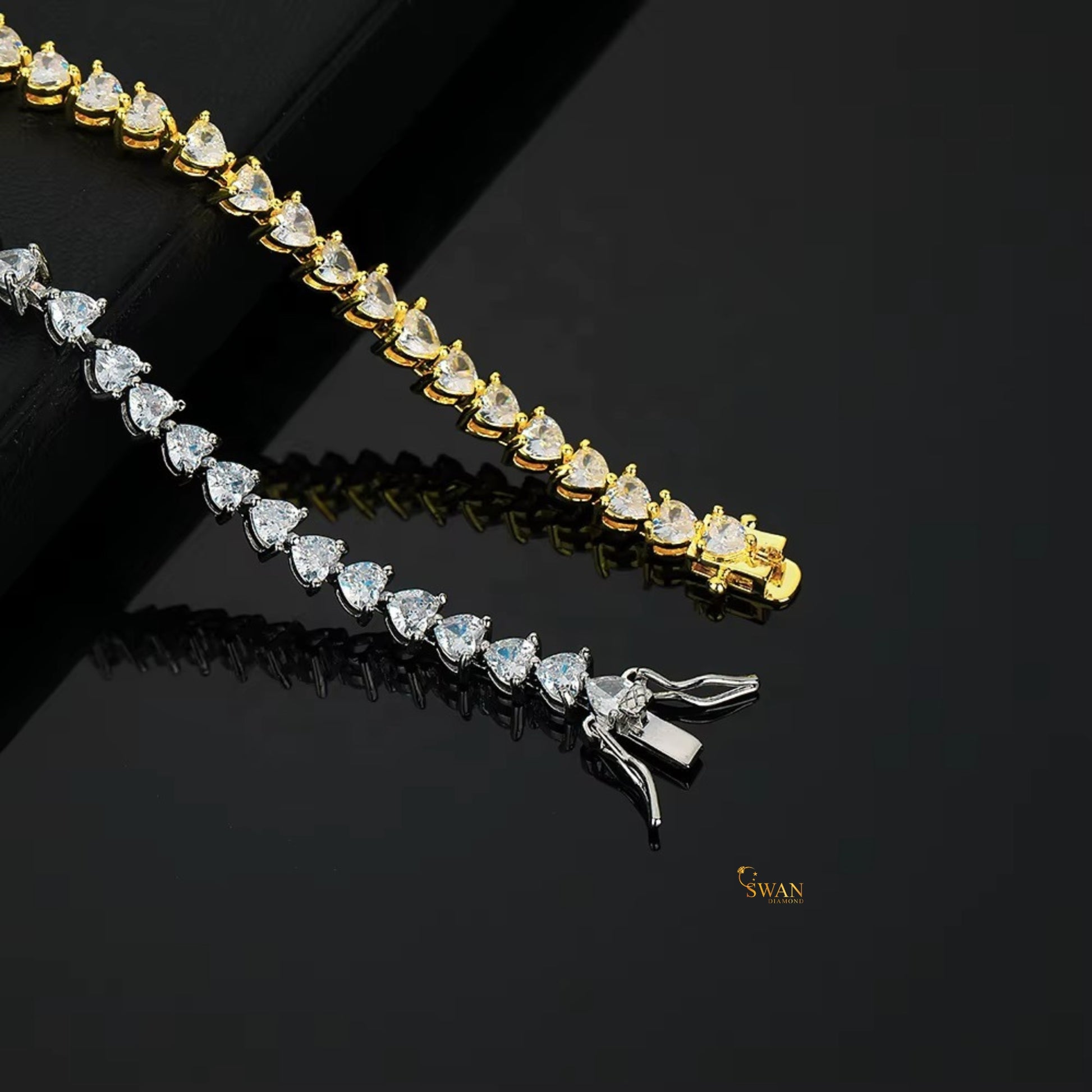 Elegant Heart Cut Diamond Tennis Bracelet in White Gold and Yellow Gold Sparkling Natural Diamond Jewelry Timeless Luxury Gift for Her swandiamond
