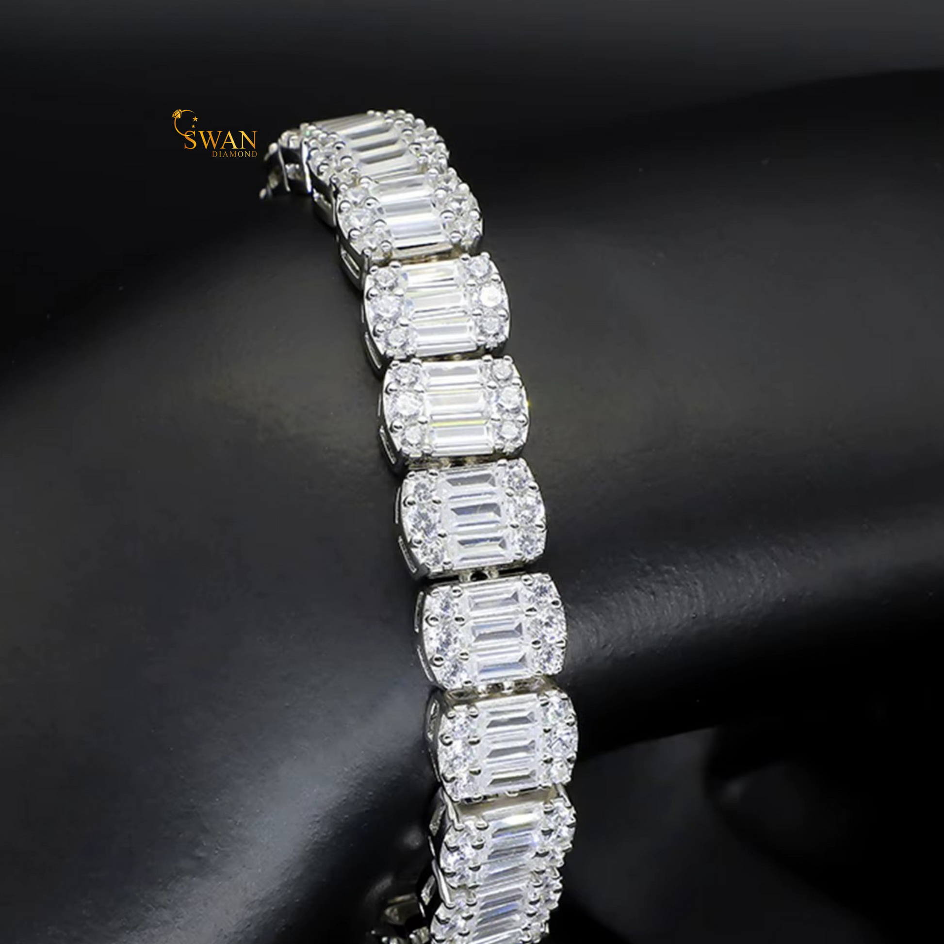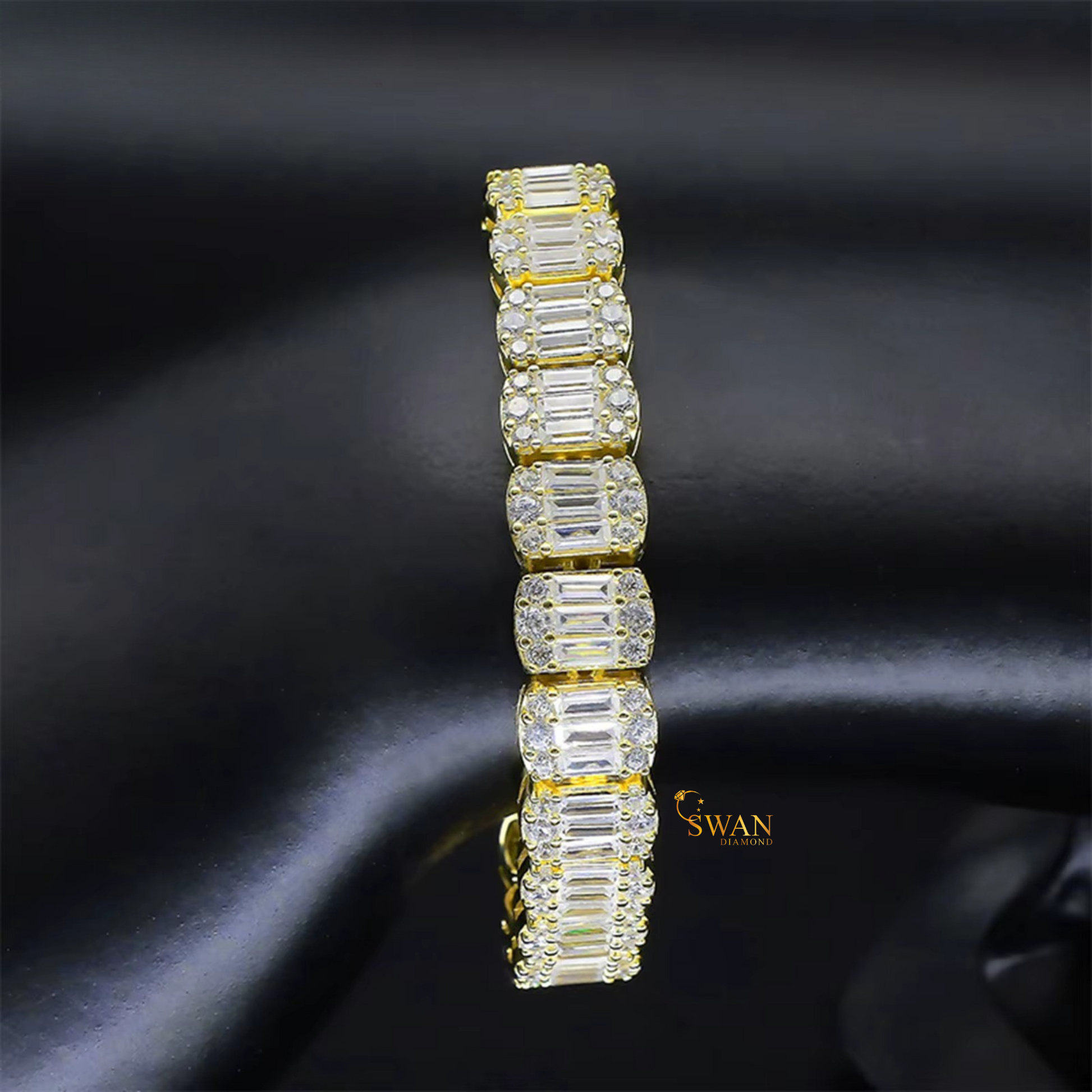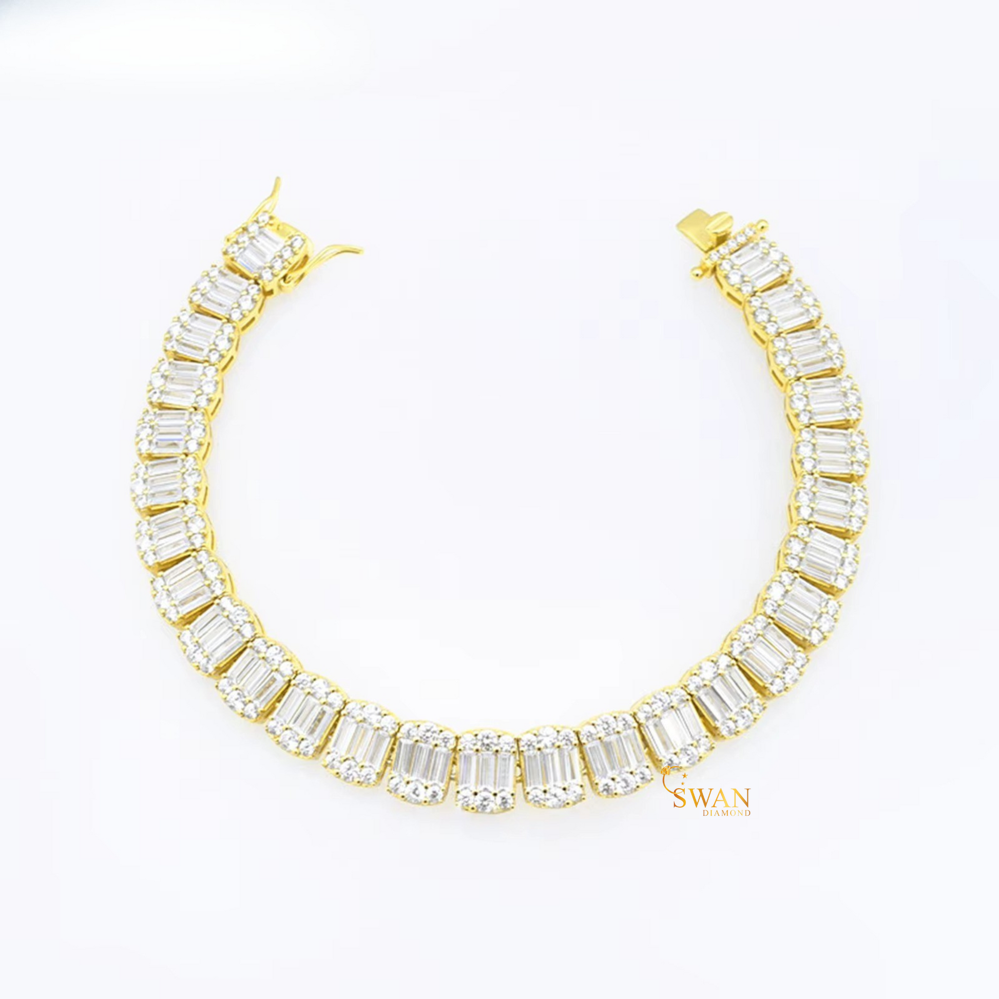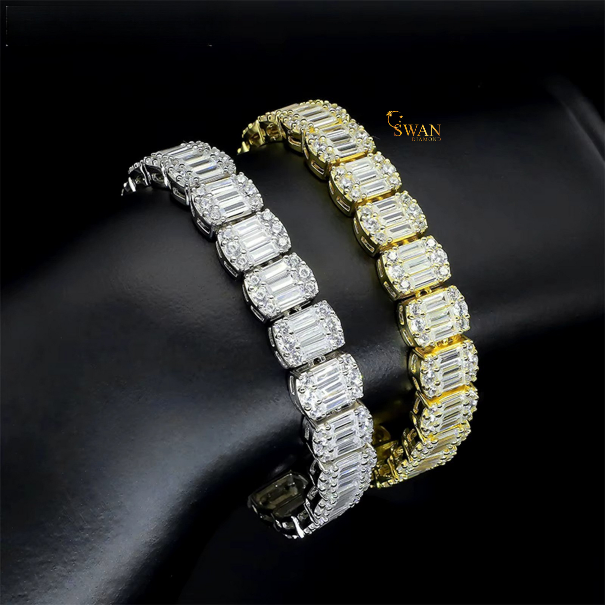 Emerald Baguette Cut Diamond Tennis Bracelet in White Gold and Yellow Gold Sparkling Natural Diamond Jewelry Elegant Luxury Gift for Her swandiamond