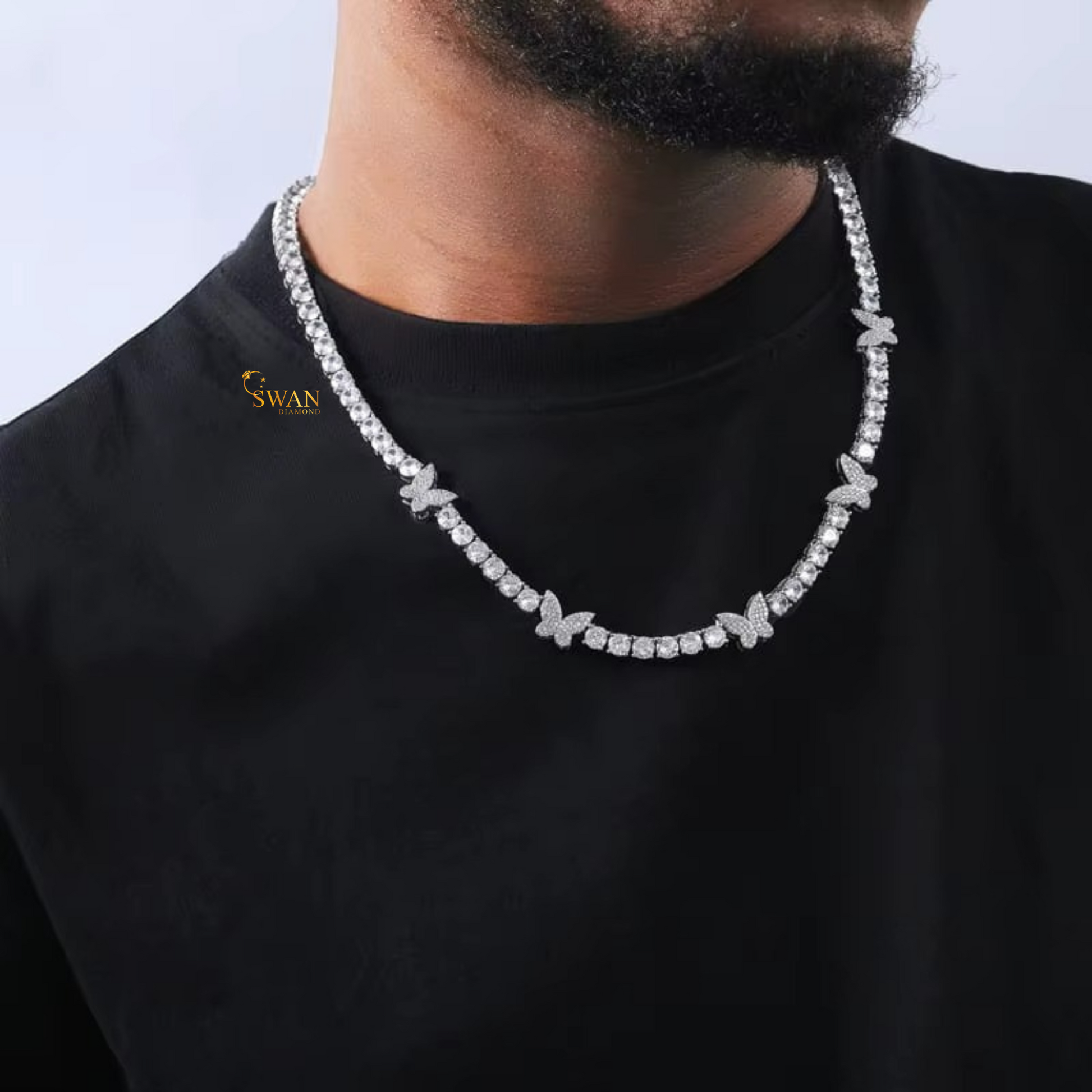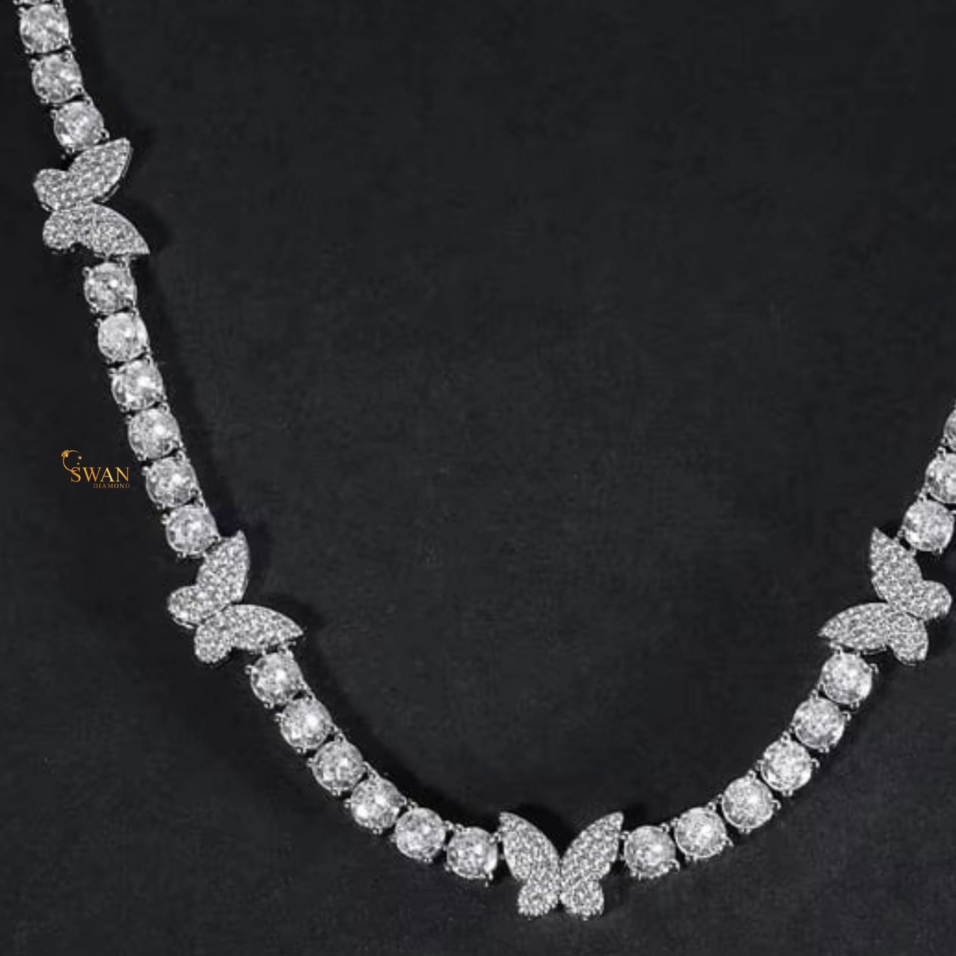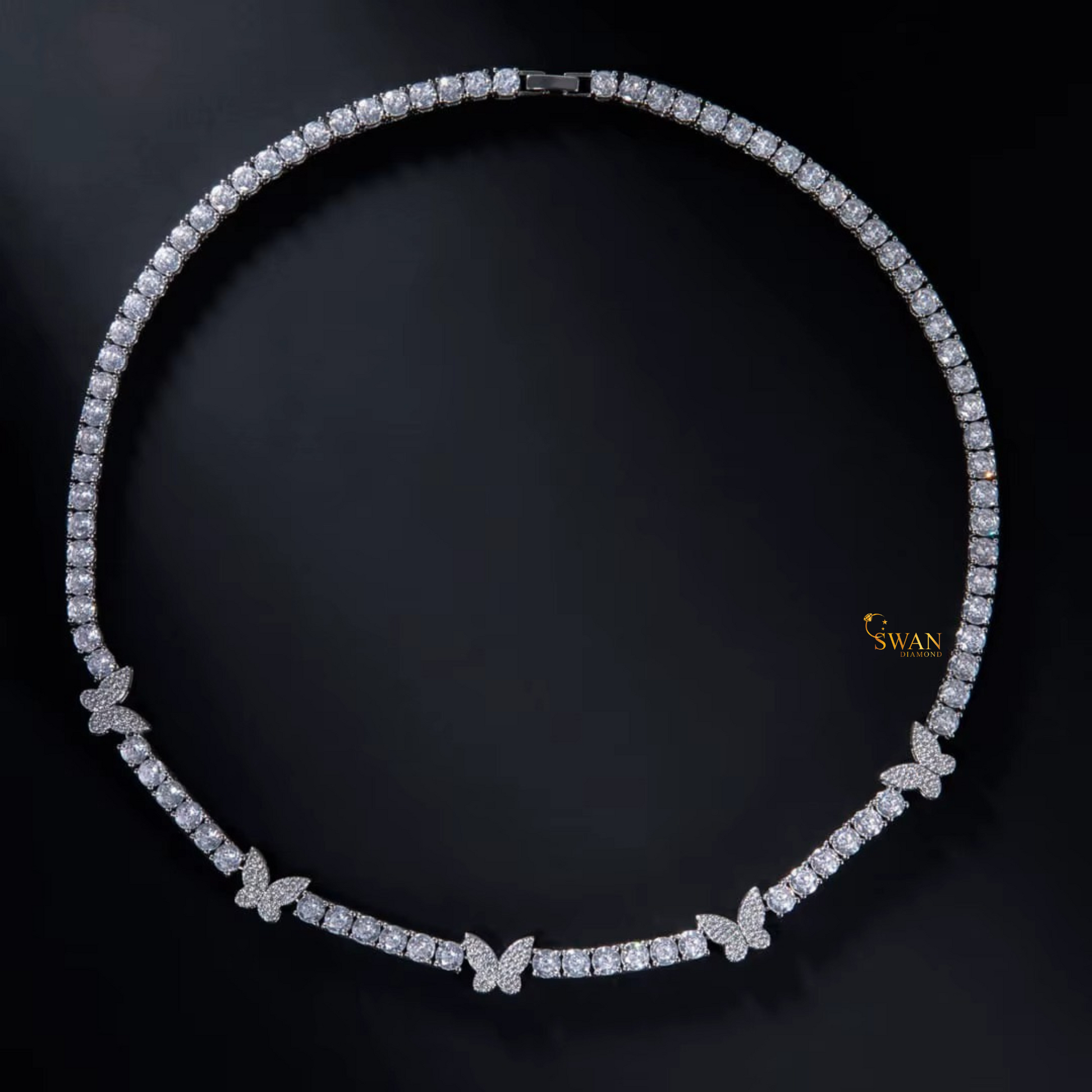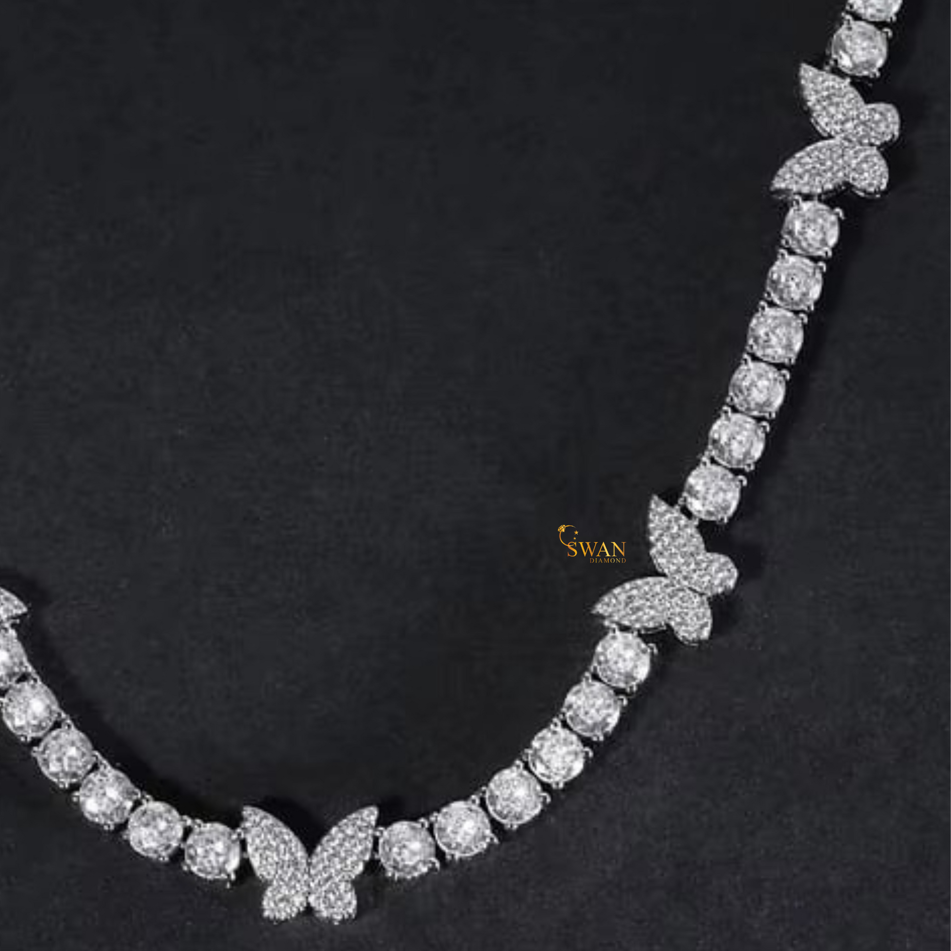 Butterfly Design Natural Diamond Tennis Chain in White Gold Luxury Iced Out Necklace Elegant Statement Jewelry for Women swandiamond