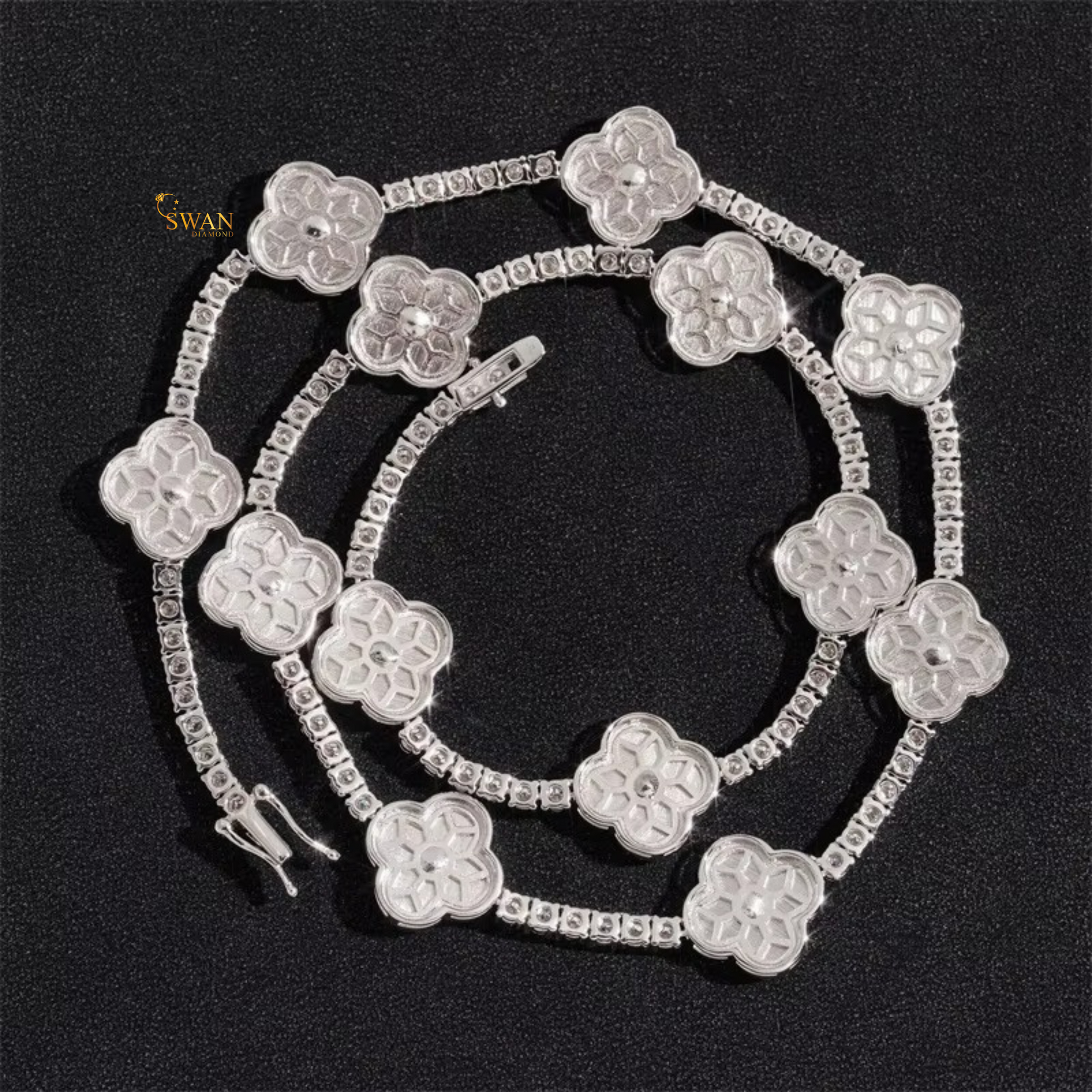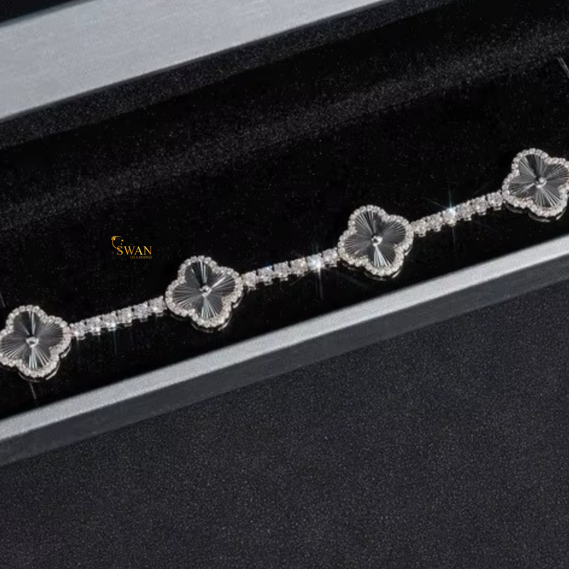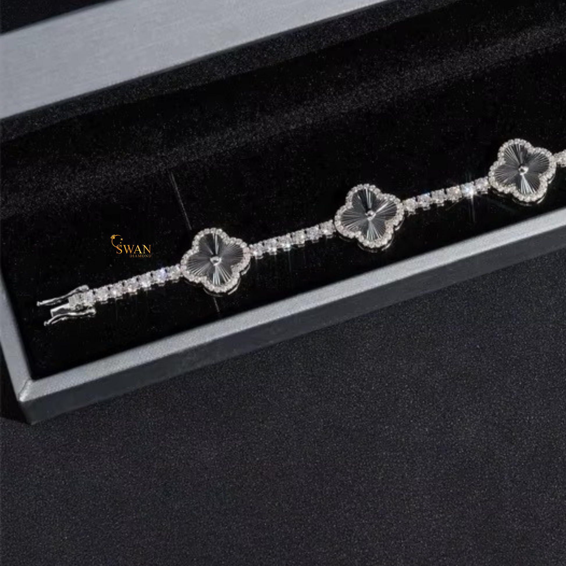 Clover Design Natural Diamond Tennis chain in White Gold Four Leaf Flower Diamond Link Bracelet Luxury Fine Jewelry Elegant Gift for Men and Women swandiamond