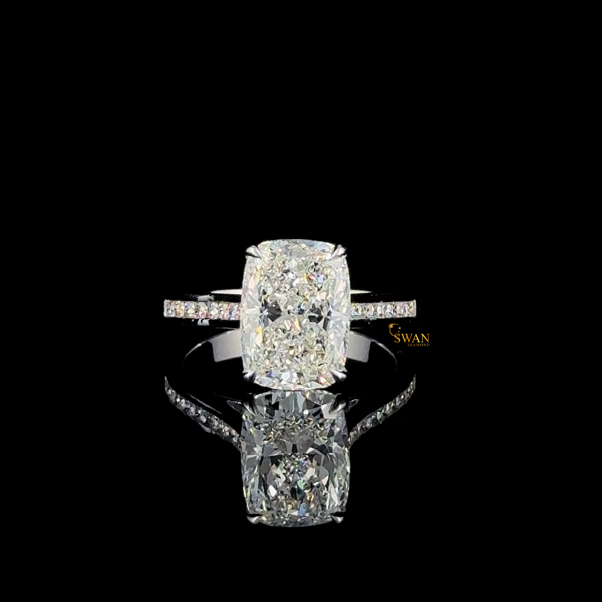 Cushion Cut Diamond Engagement Ring in Solid White Gold with Pavé Band Classic Elegant Solitaire Bridal Jewelry Gift for Her swandiamond