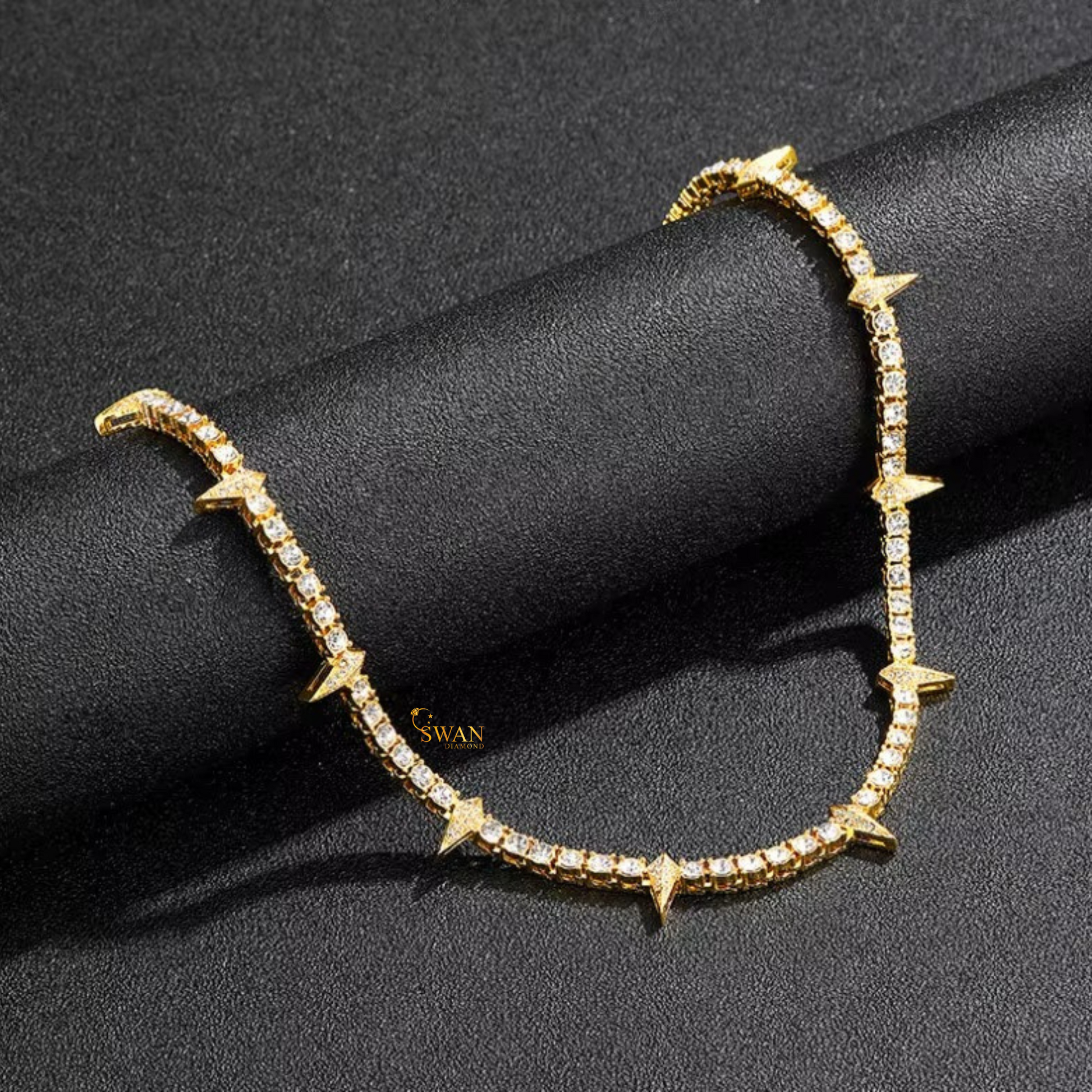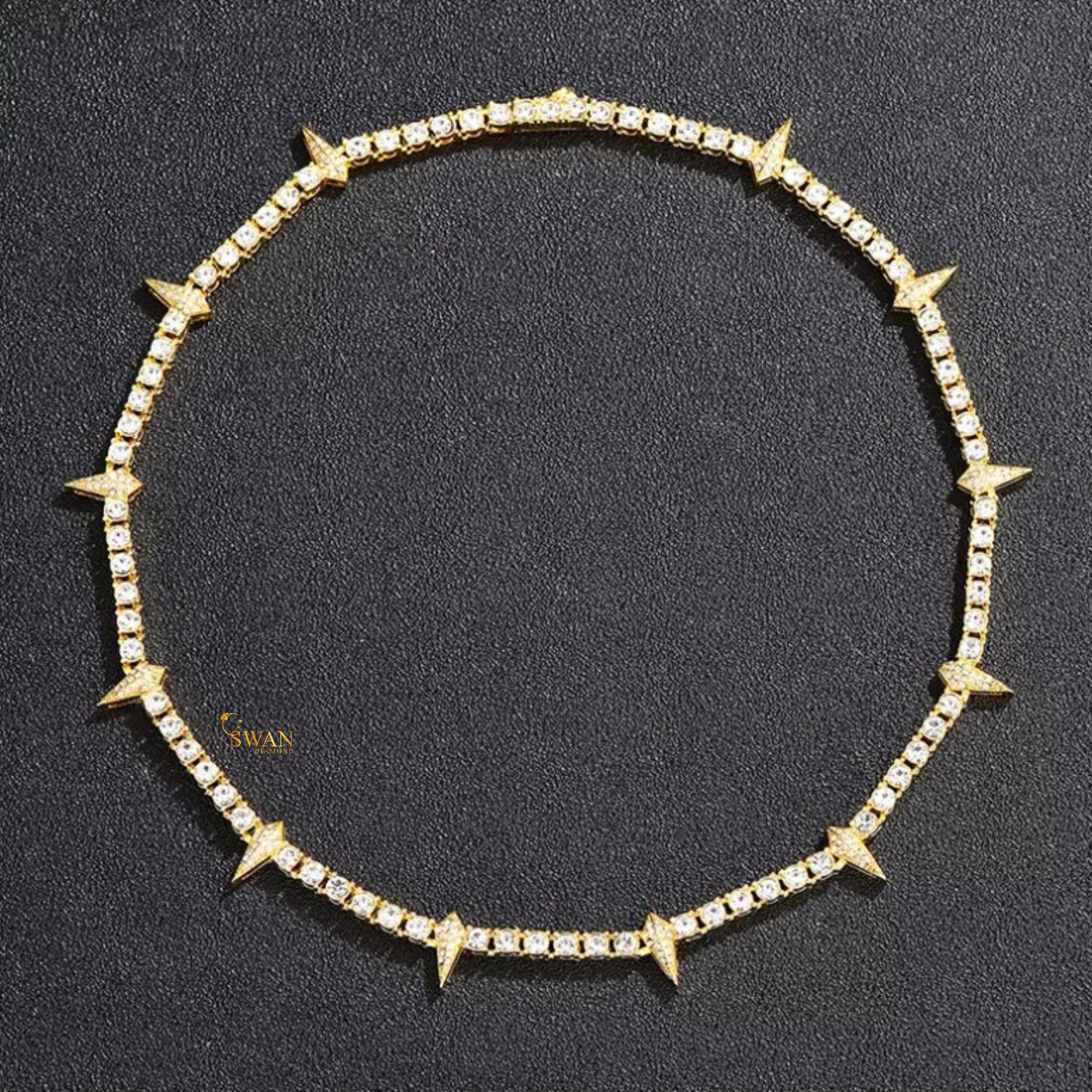 Gold Diamond Arrow Tennis Chain Necklace Natural Diamond Hip Hop Luxury Statement Jewelry for Men and Women swandiamond