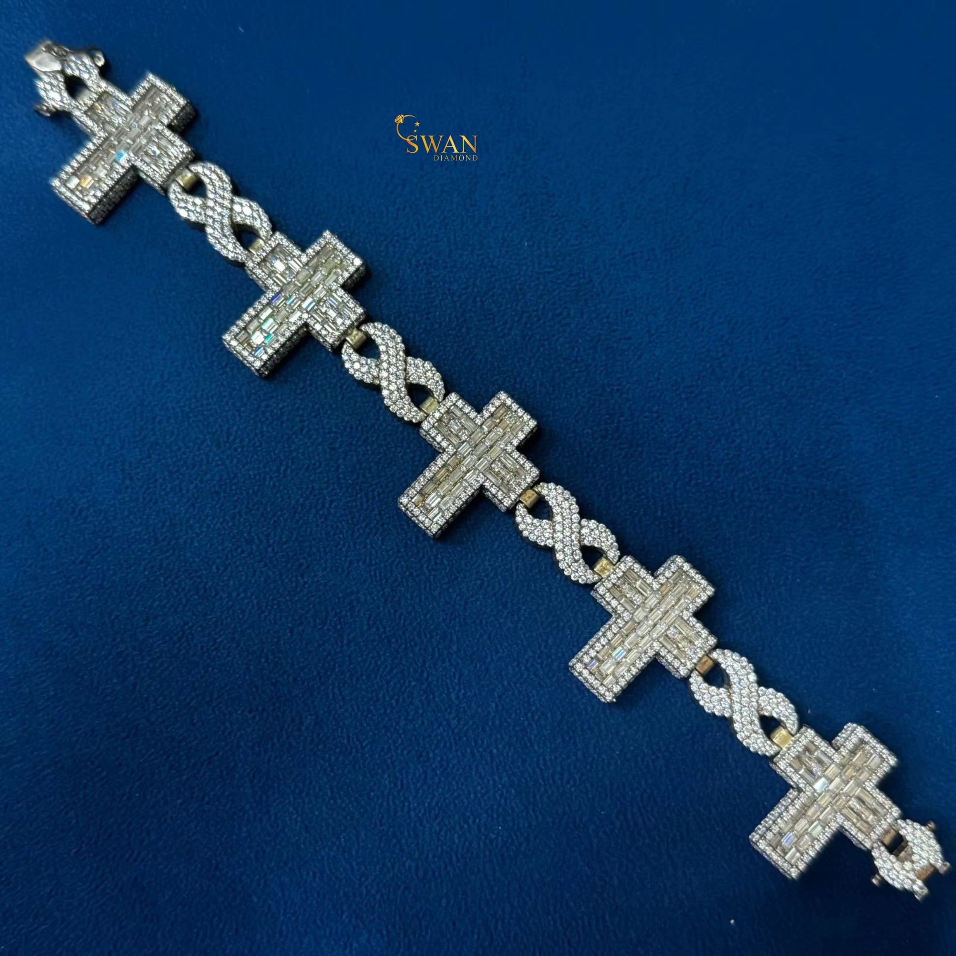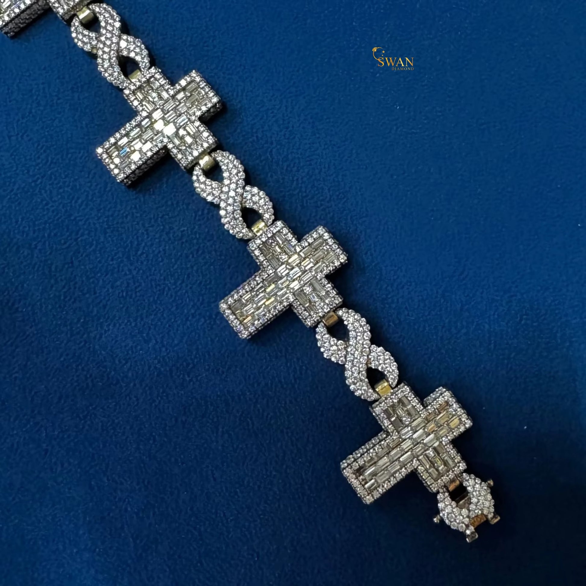 Iced Out Diamond Cross Link Bracelet Luxury Statement Jewelry with Baguette and Round Natural Diamonds for Men and Women swandiamond
