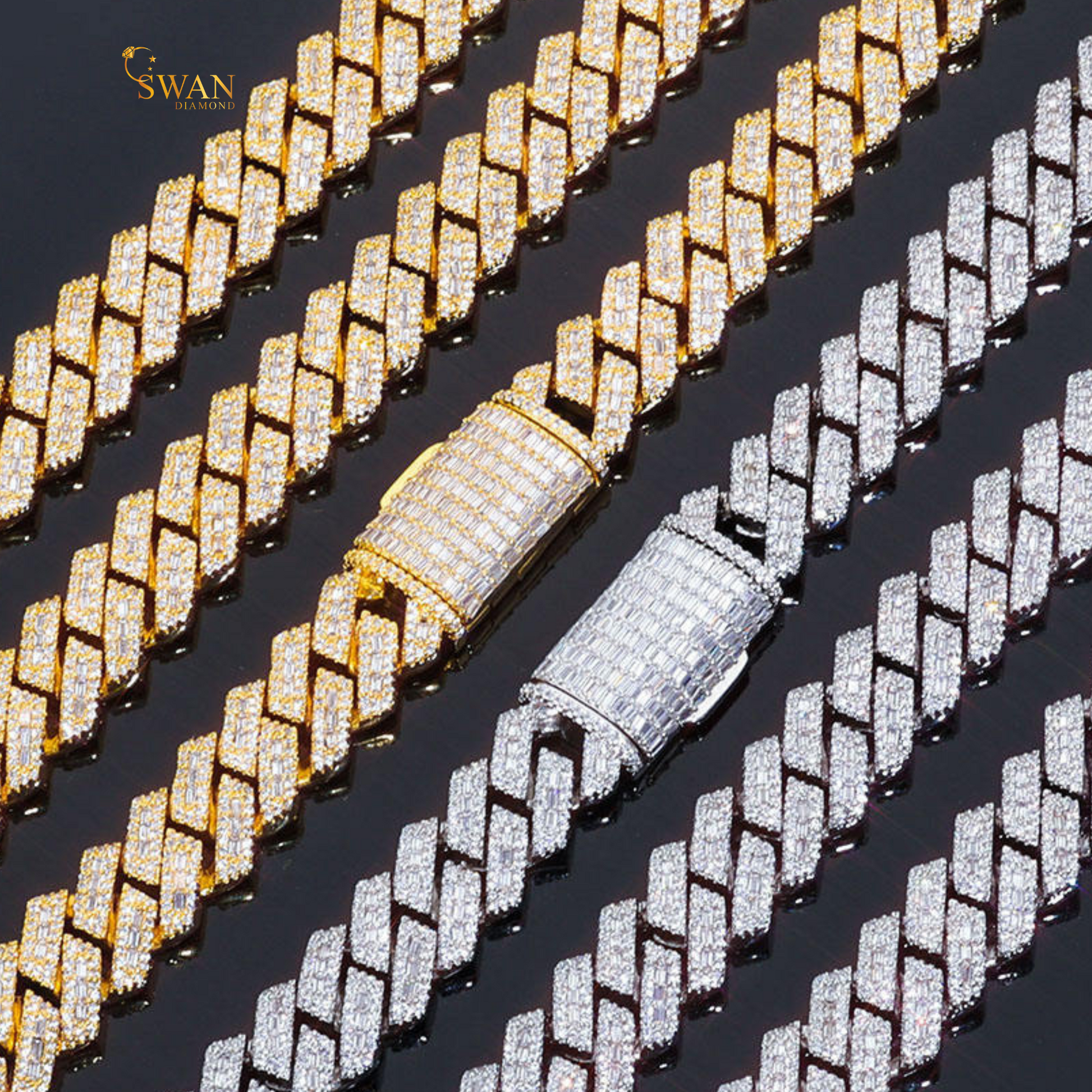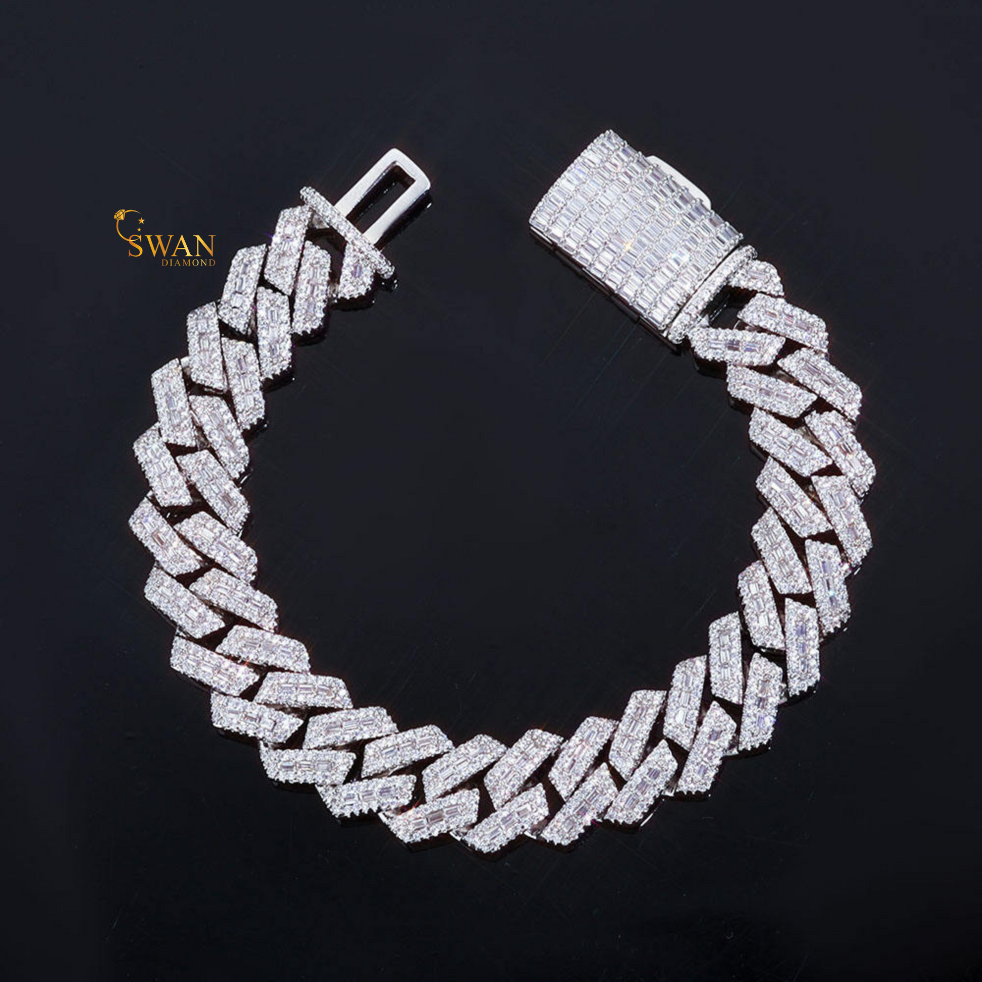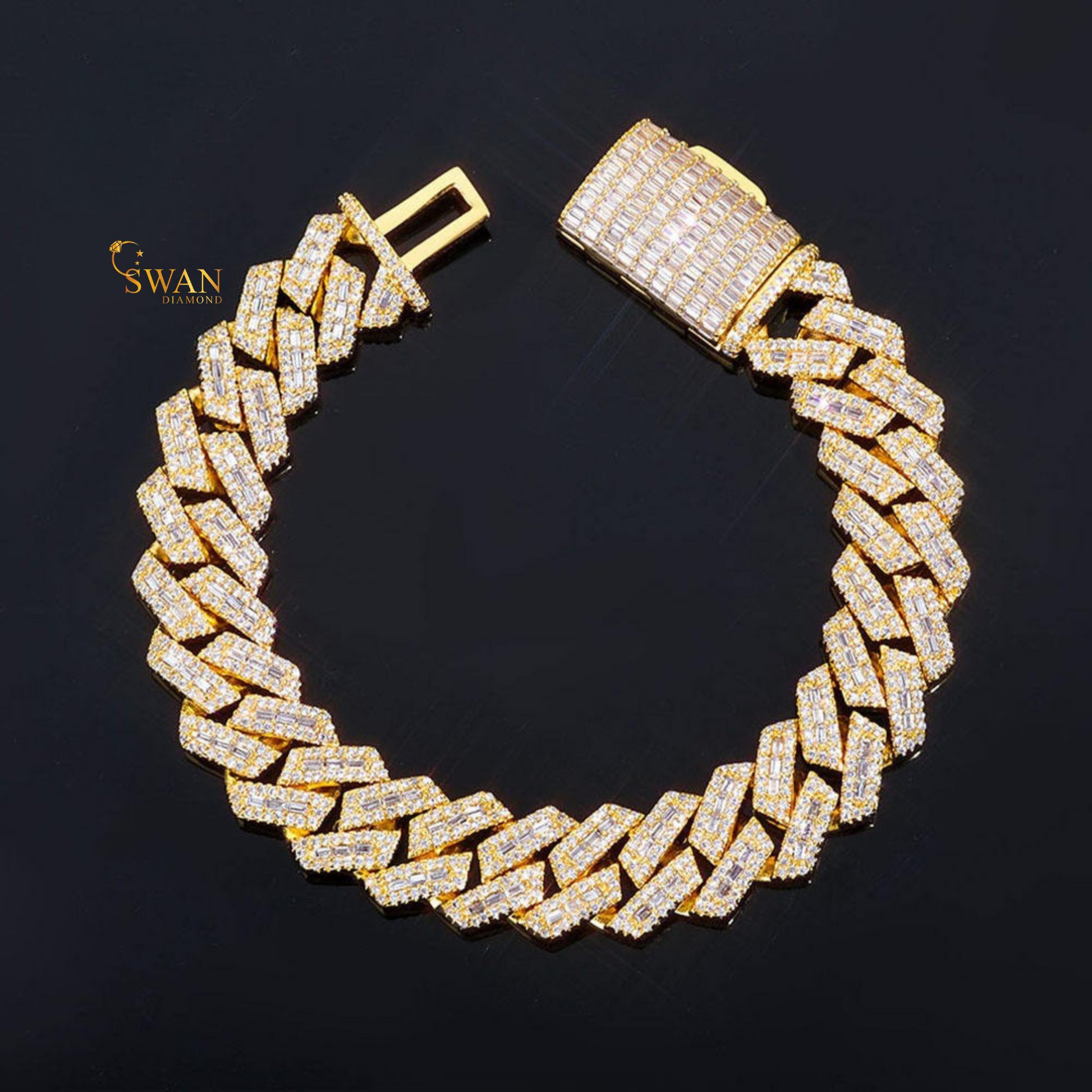 Cuban Link Diamond Bracelet White Gold and Yellow Gold Plated Luxury Statement with Full Pave Setting for Men and Women Hip Hop Jewelry swandiamond