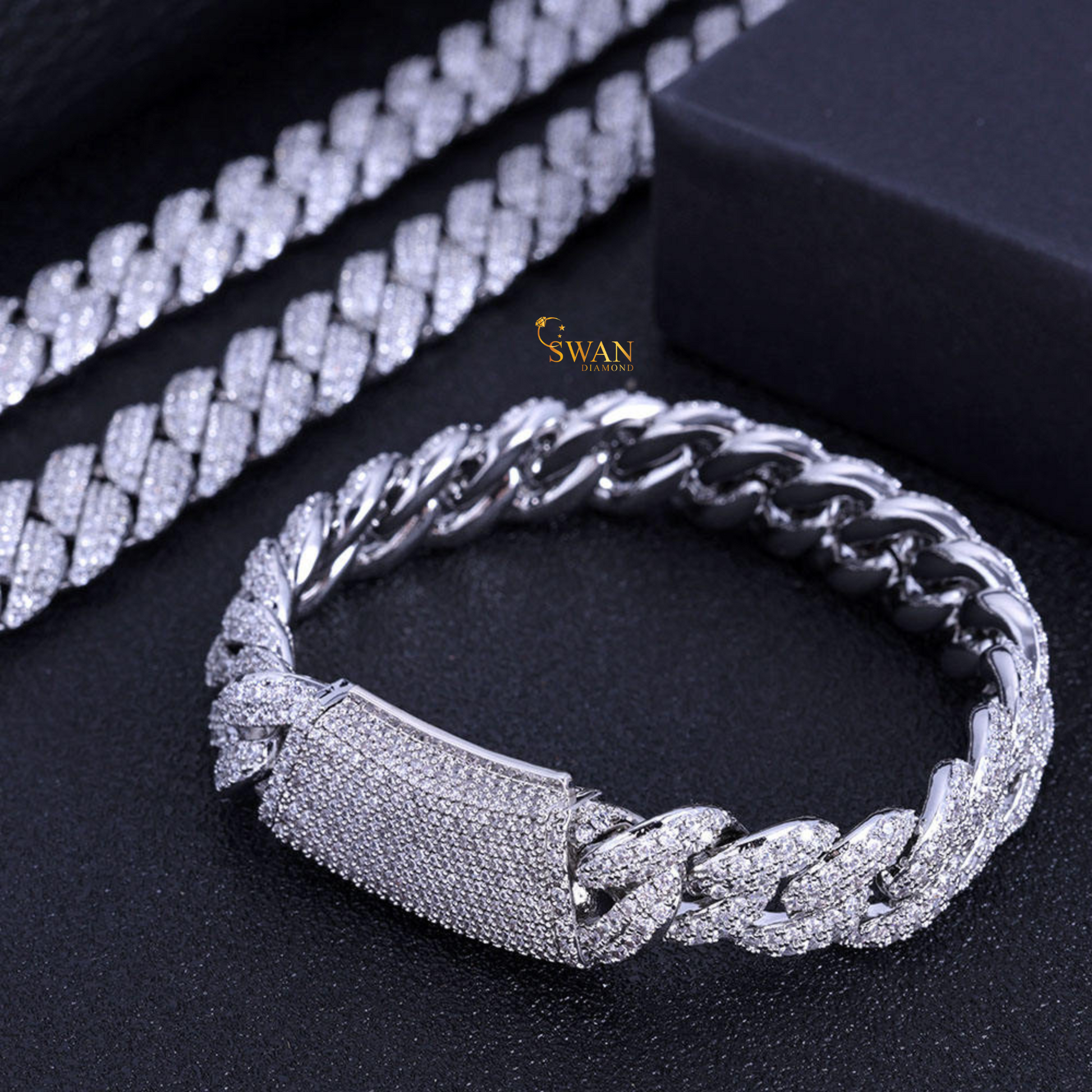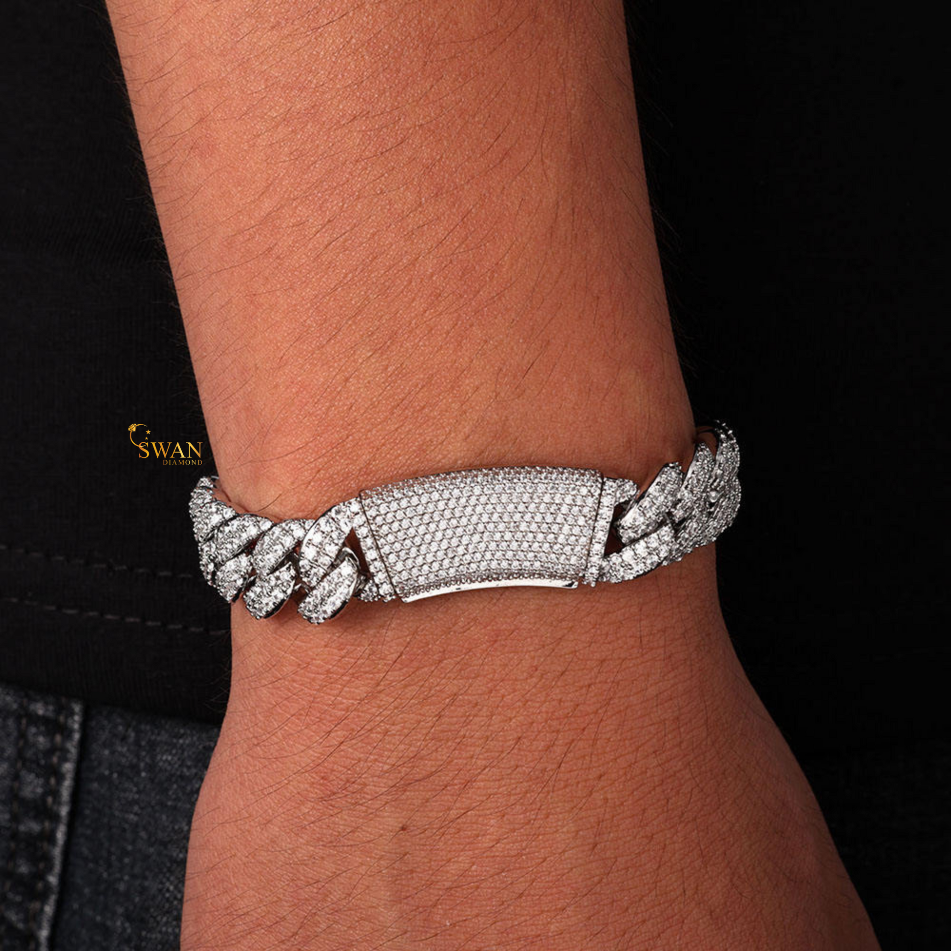 Mens Luxury Cuban Link Bracelet White Gold Iced Out with Natural Diamonds Pave Setting Statement Jewelry swandiamond