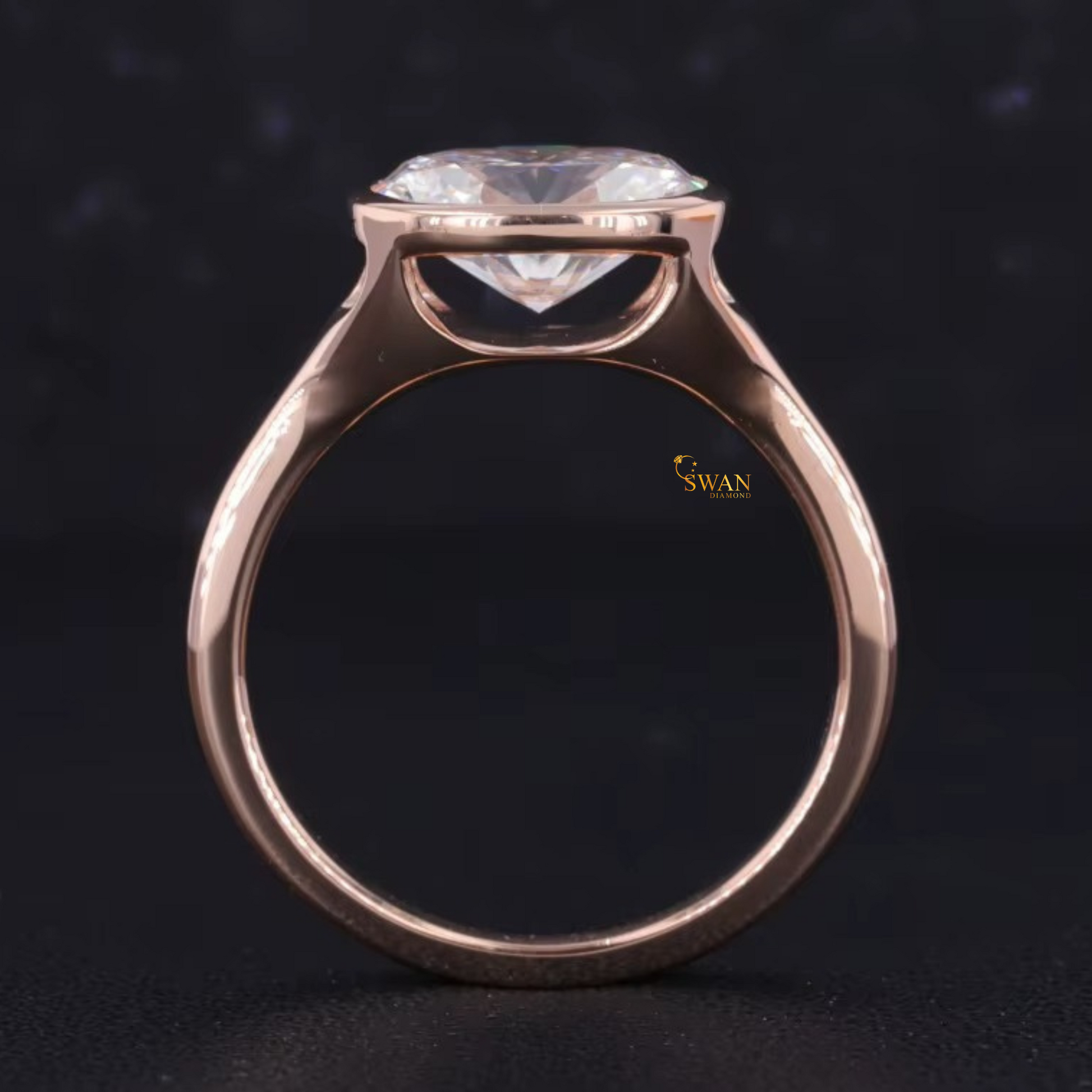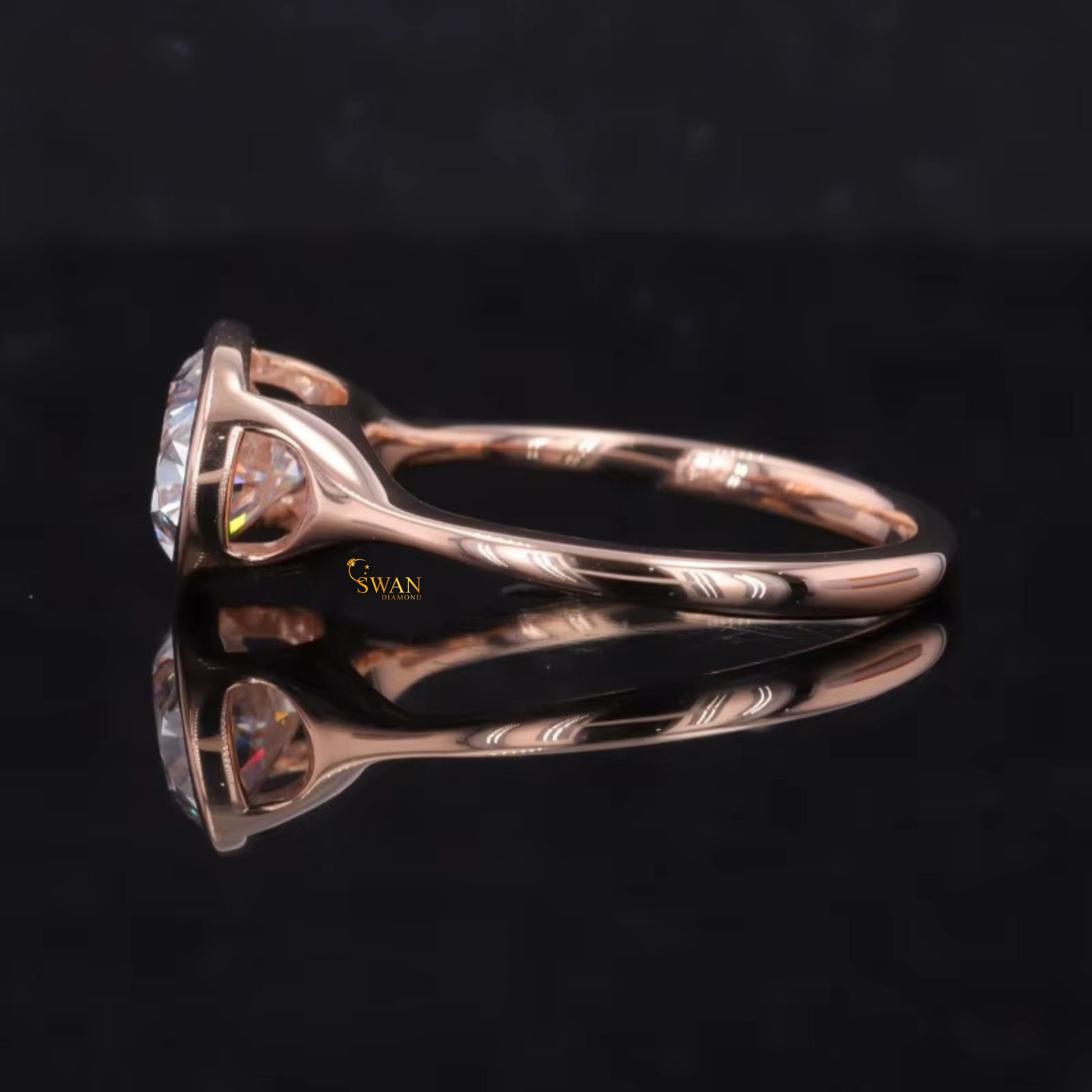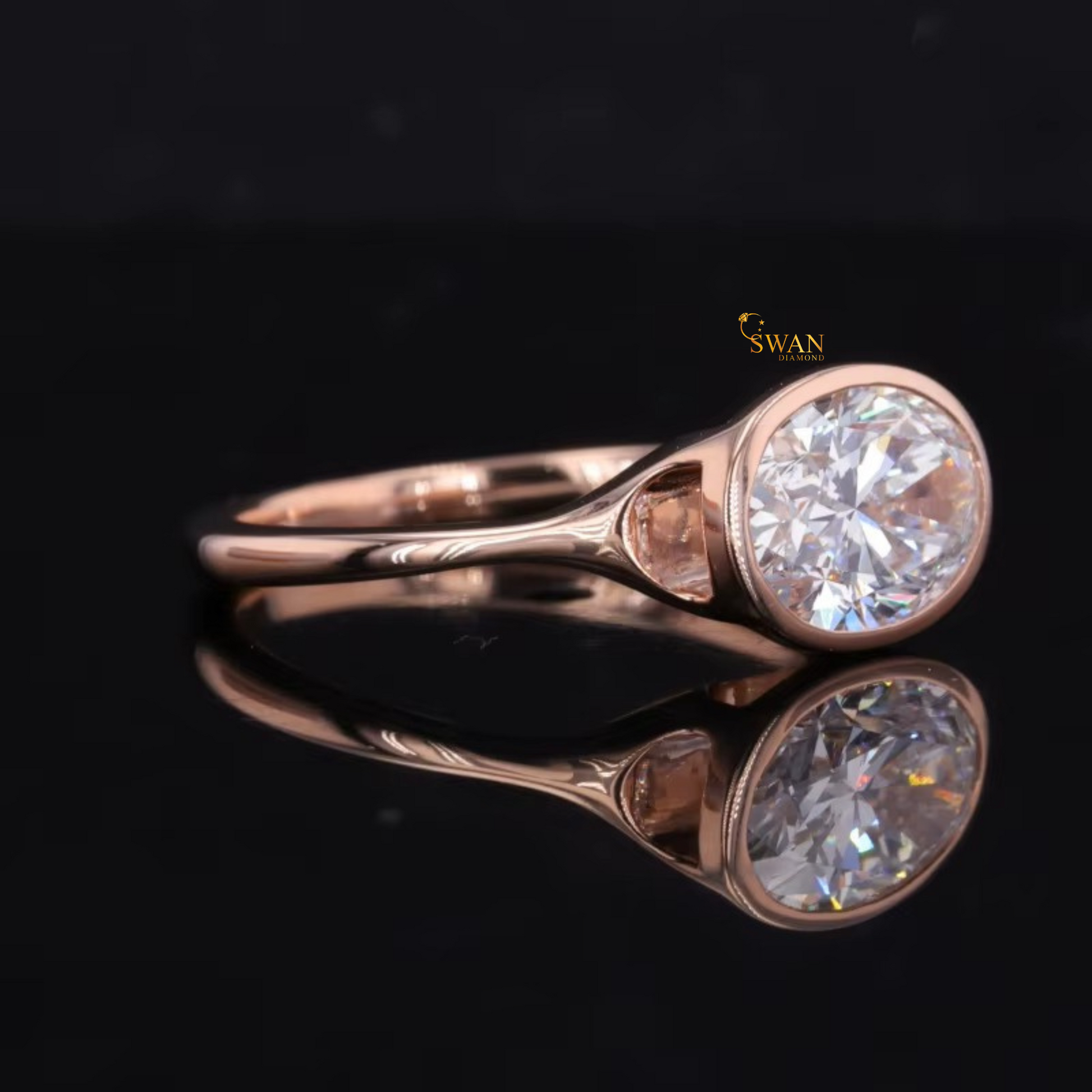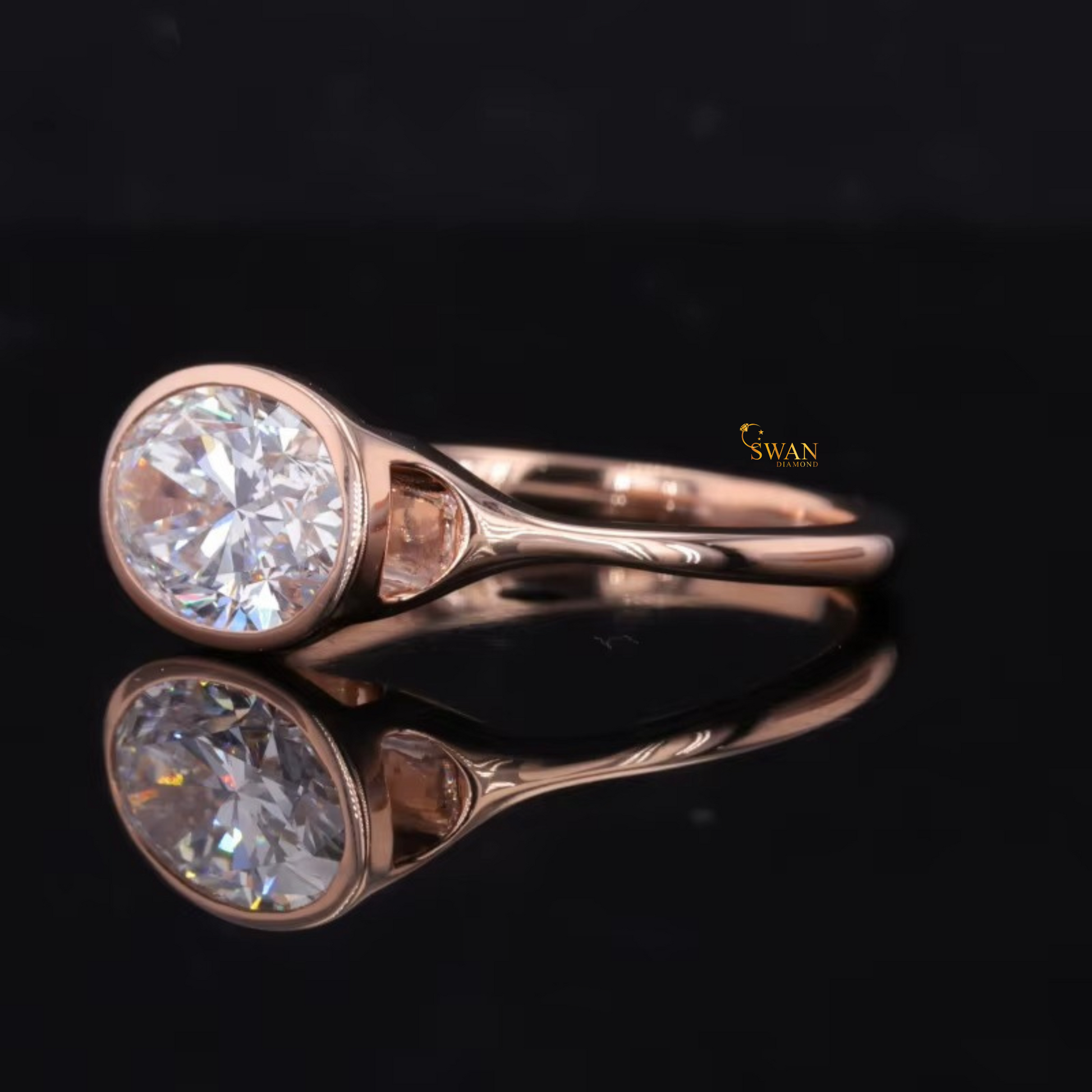 Oval Cut Diamond Engagement Ring in Rose Gold Bezel Set Solitaire Vintage Inspired Elegant Jewelry Gift for Her swandiamond
