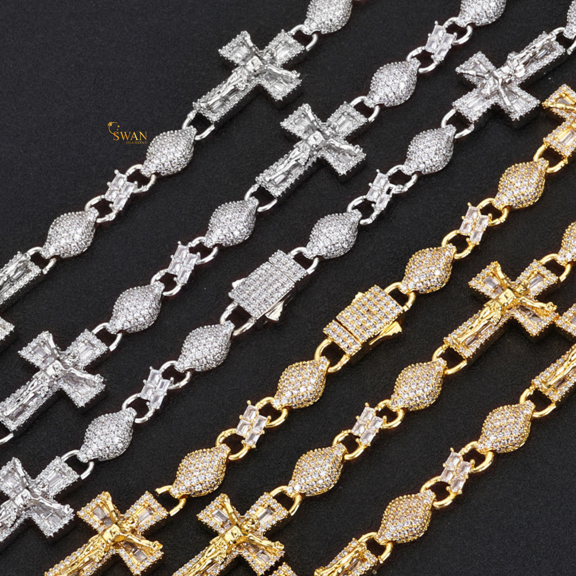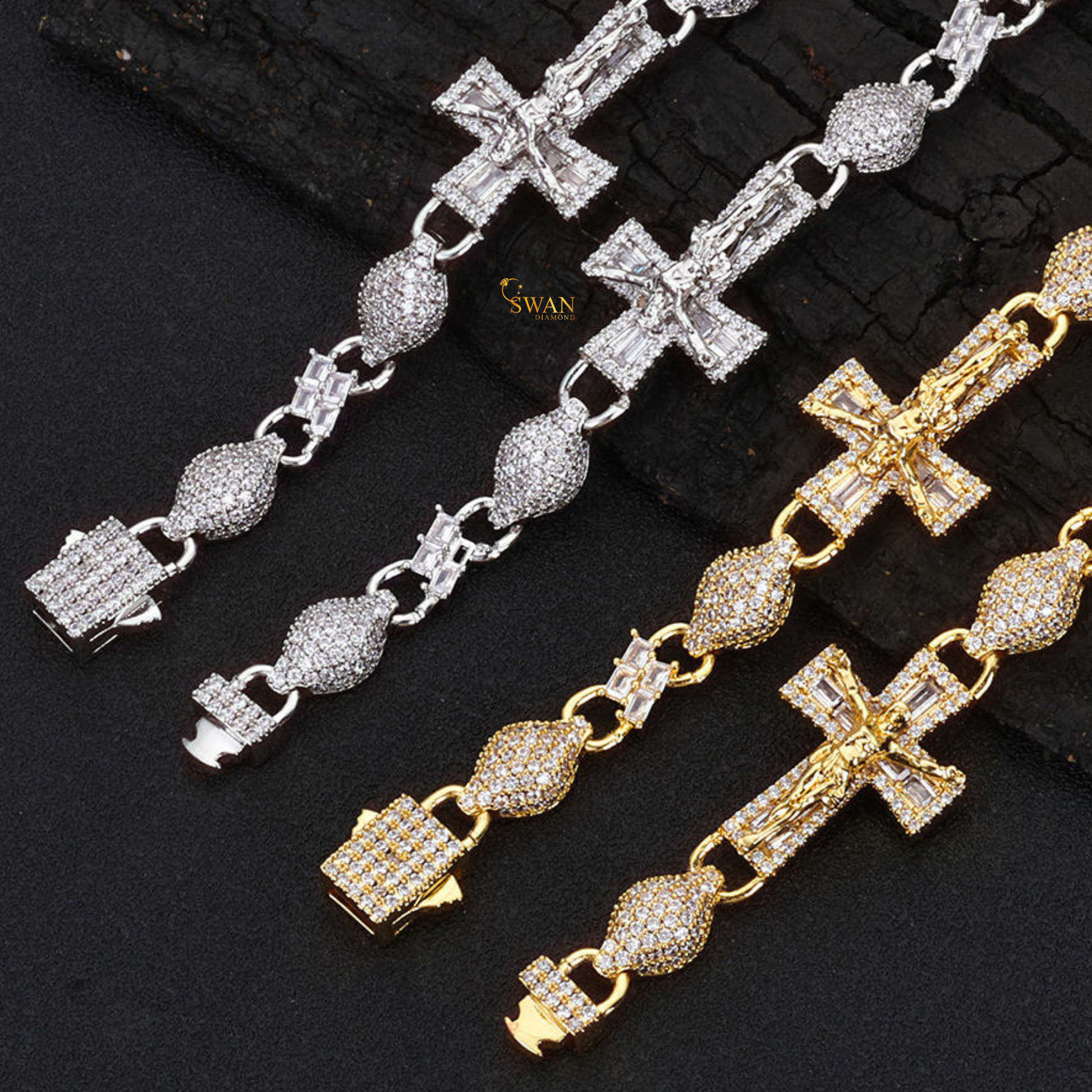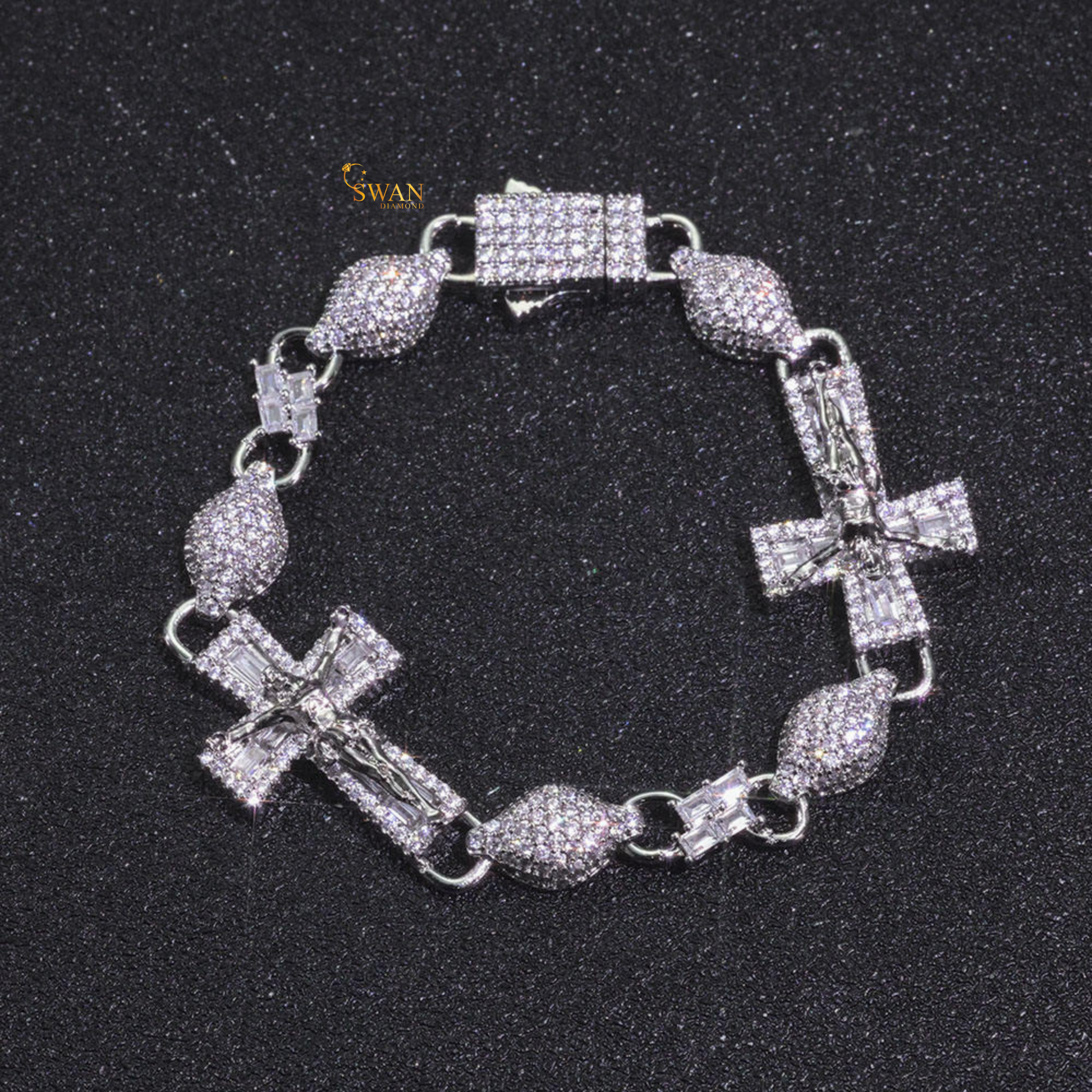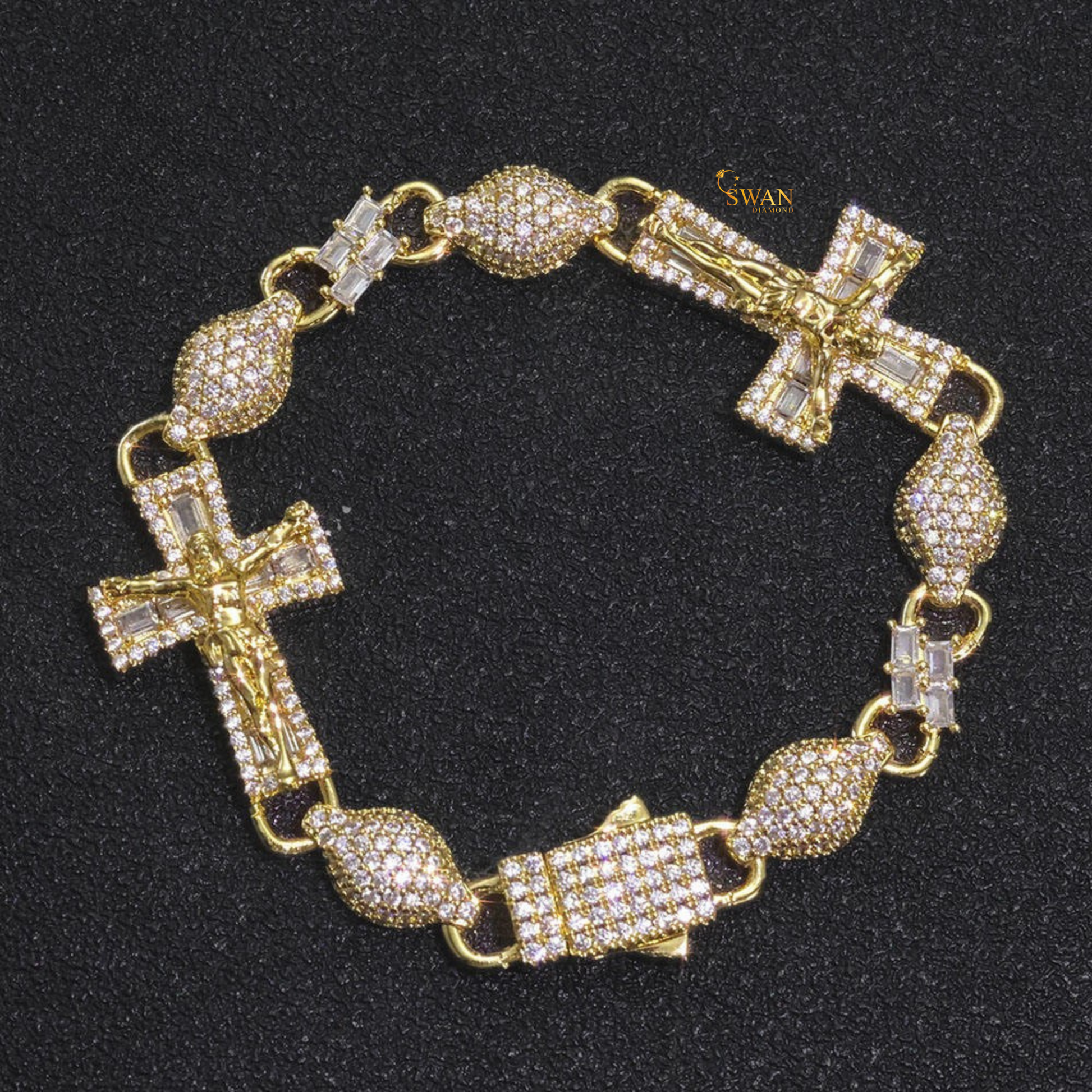 Premium Icy Cross Link Bracelet White Gold and Yellow Gold Plated Diamond Pave Setting Hip Hop Inspired Luxury Jewelry swandiamond